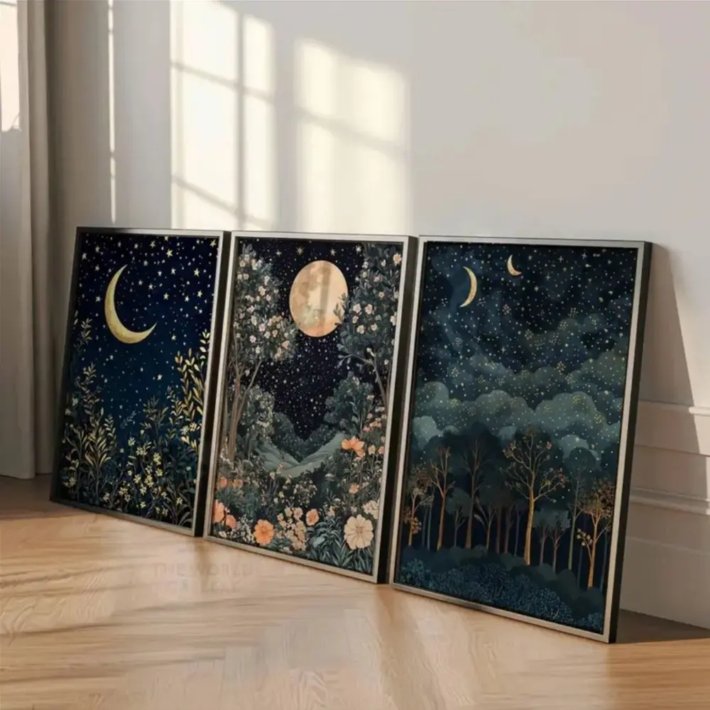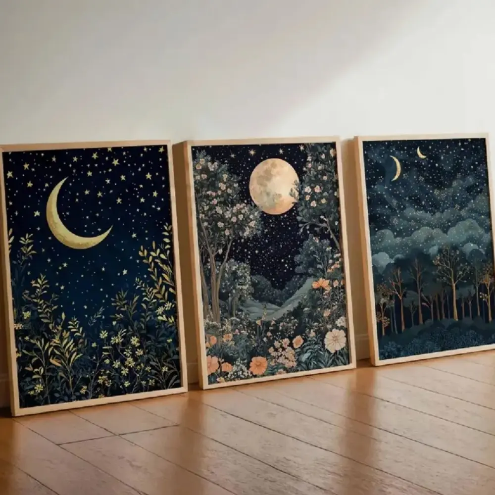 【Night sky motif】: Capture celestial charm with moonlit night skies depicted within the canvas prints.