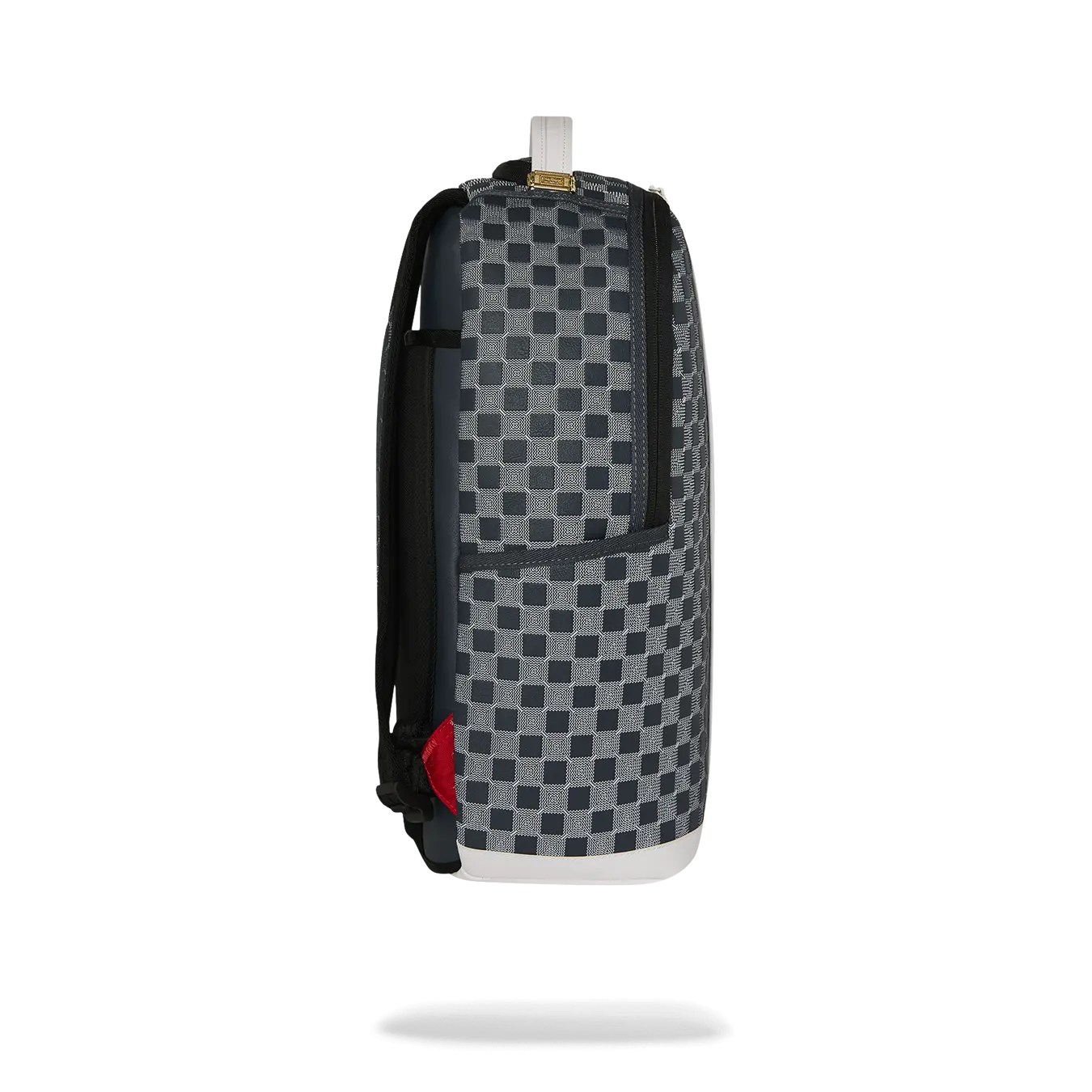 Dimensions: 18" x 6" x 11.5" • Front zipper pocket • Side pockets • Zippered Stash pocket • Separate velour sunglass compartment • Ergonomic mesh back padding • Adjustable Straps for custom sizing • Gold zippers with metal hardware • Metal "Sprayground Authentic" badge • Slide through back sleeve connects to carry-on luggage to free your hands