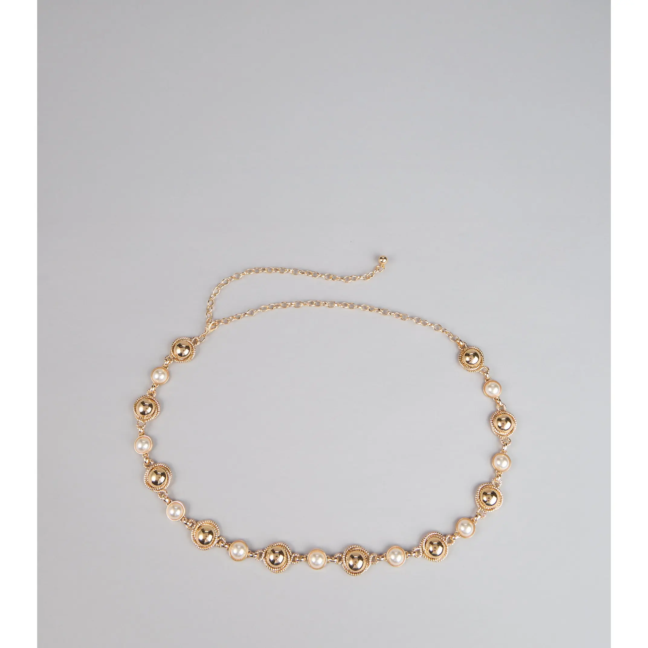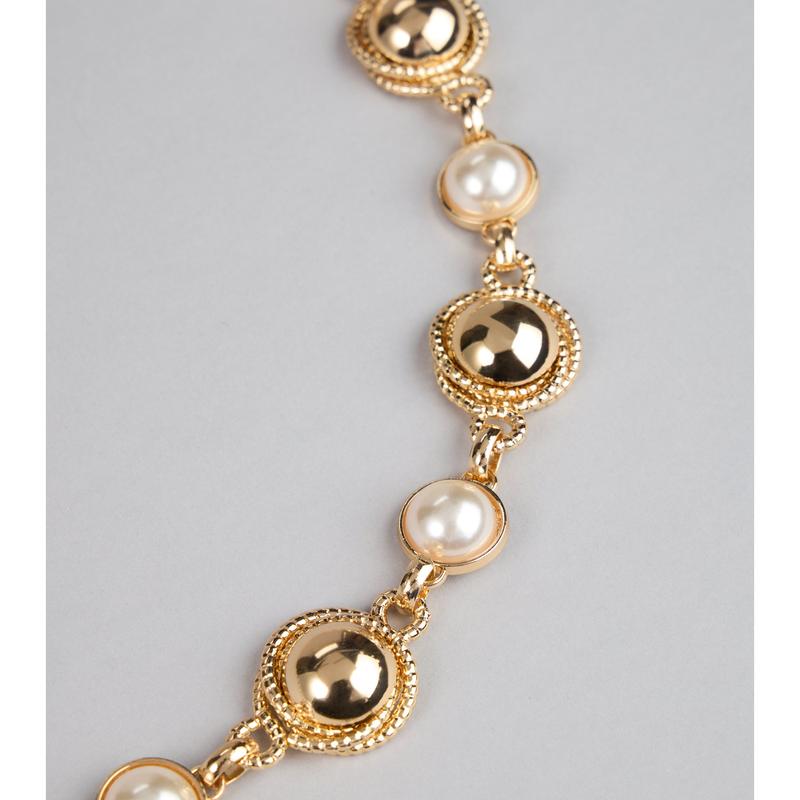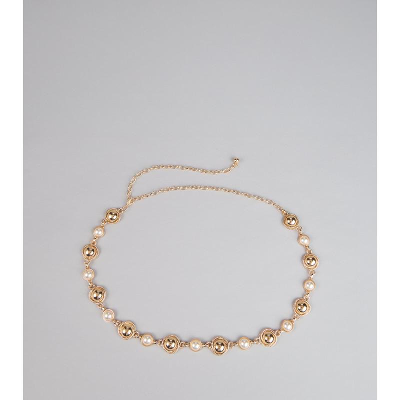 Add timeless sophistication to any look with this faux pearl chain belt. The alternating faux pearl and textured gold details give it a luxe, vintage-inspired vibe that instantly elevates your outfit.