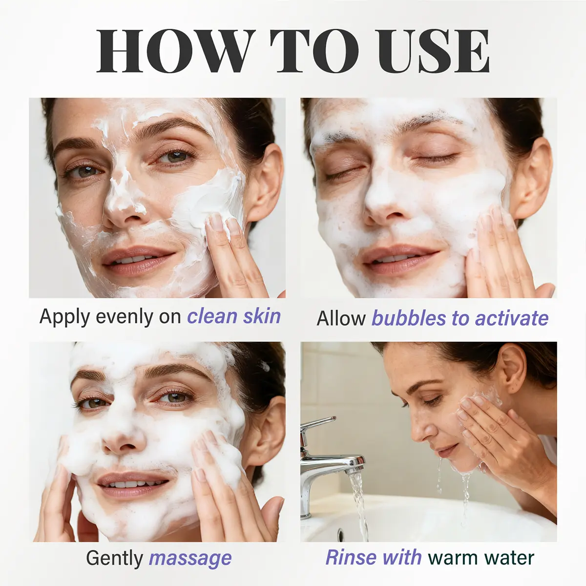 2.Activate: Allow the mask to foam and bubble for a few minutes.