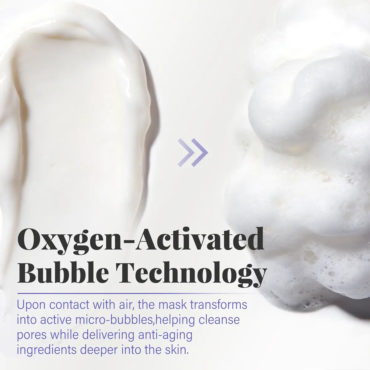 The creamy formula activates with oxygen and transforms into fine bubbles on the skin, helping to deeply cleanse pores while delivering firming and hydrating ingredients.