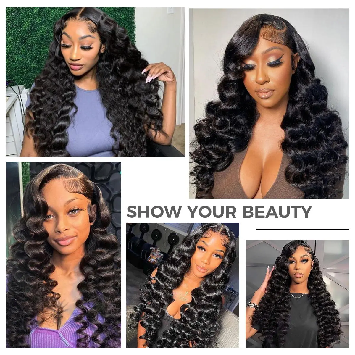 • Lace Choice: 13x6 Lace Frontal; 7x5 Pre Cut Lace • Color: Natural Color Black. • Texture: Loose Wave Human Hair.