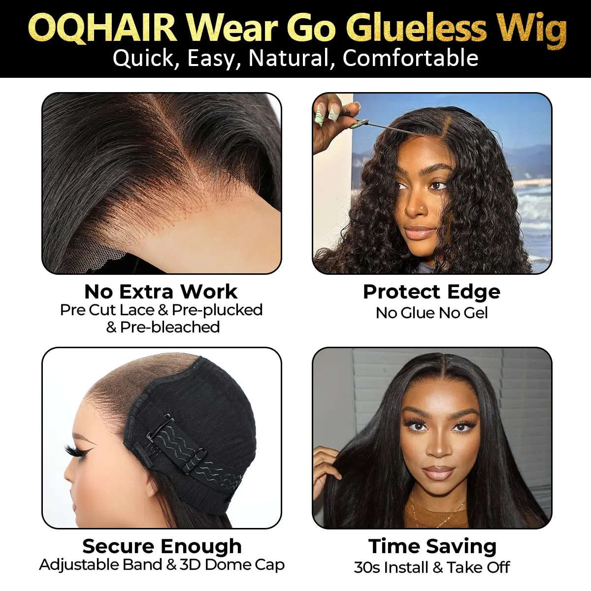 Absolutely the best hair ever. The installation is easy. Ready to wear out of the box. Worth the price and fast shipping. The extra gifts are great perks for us all as we love gifts. I will absolutely purchase again. Thank you OQ Hair