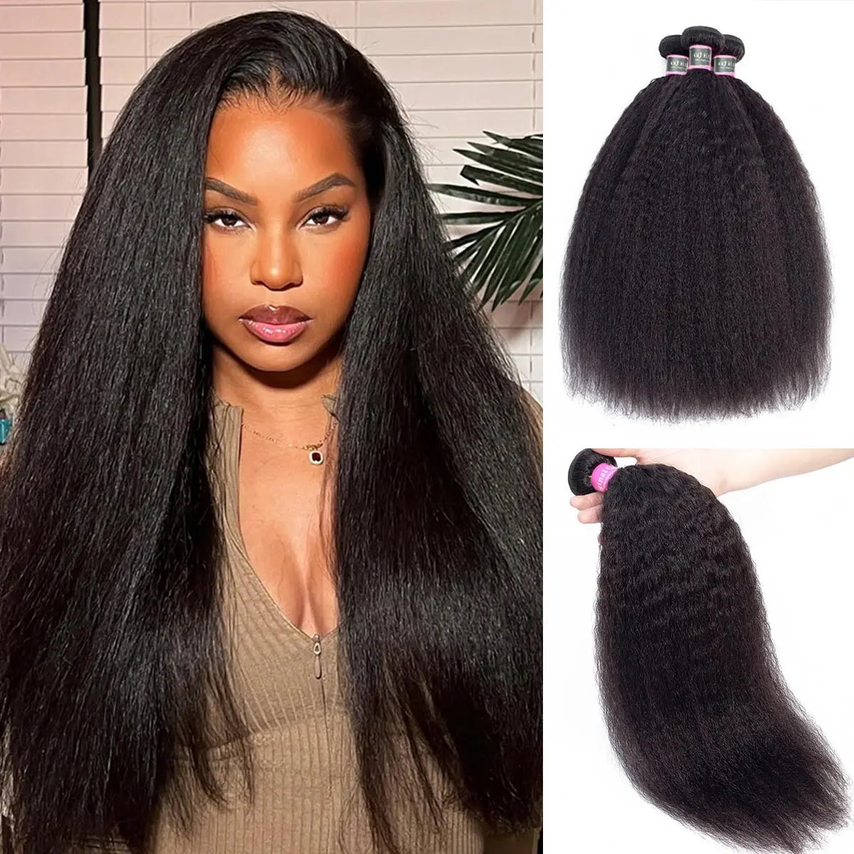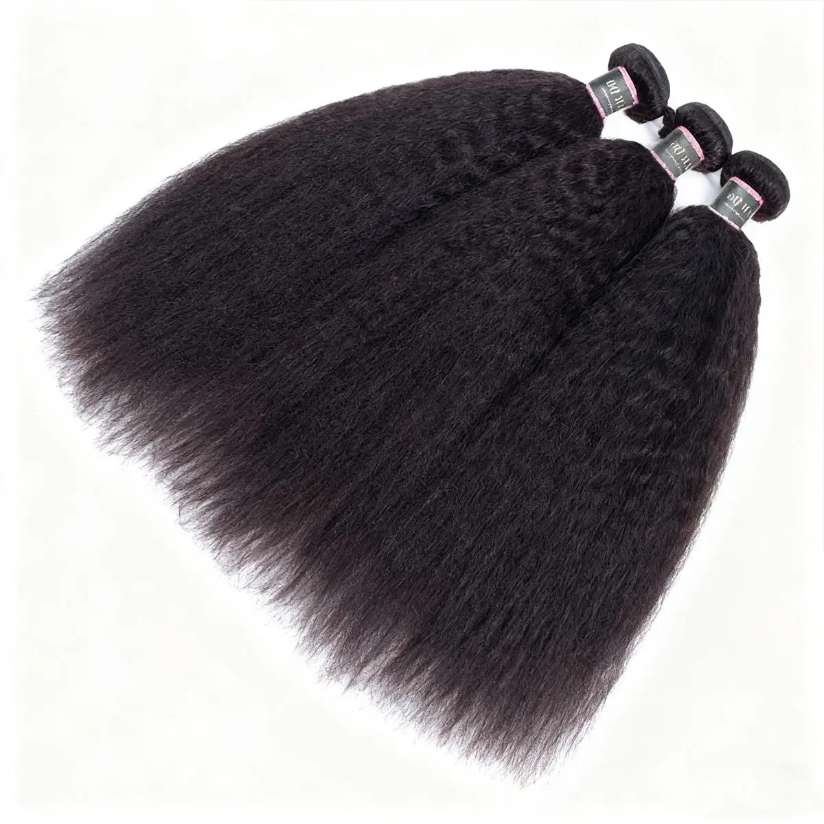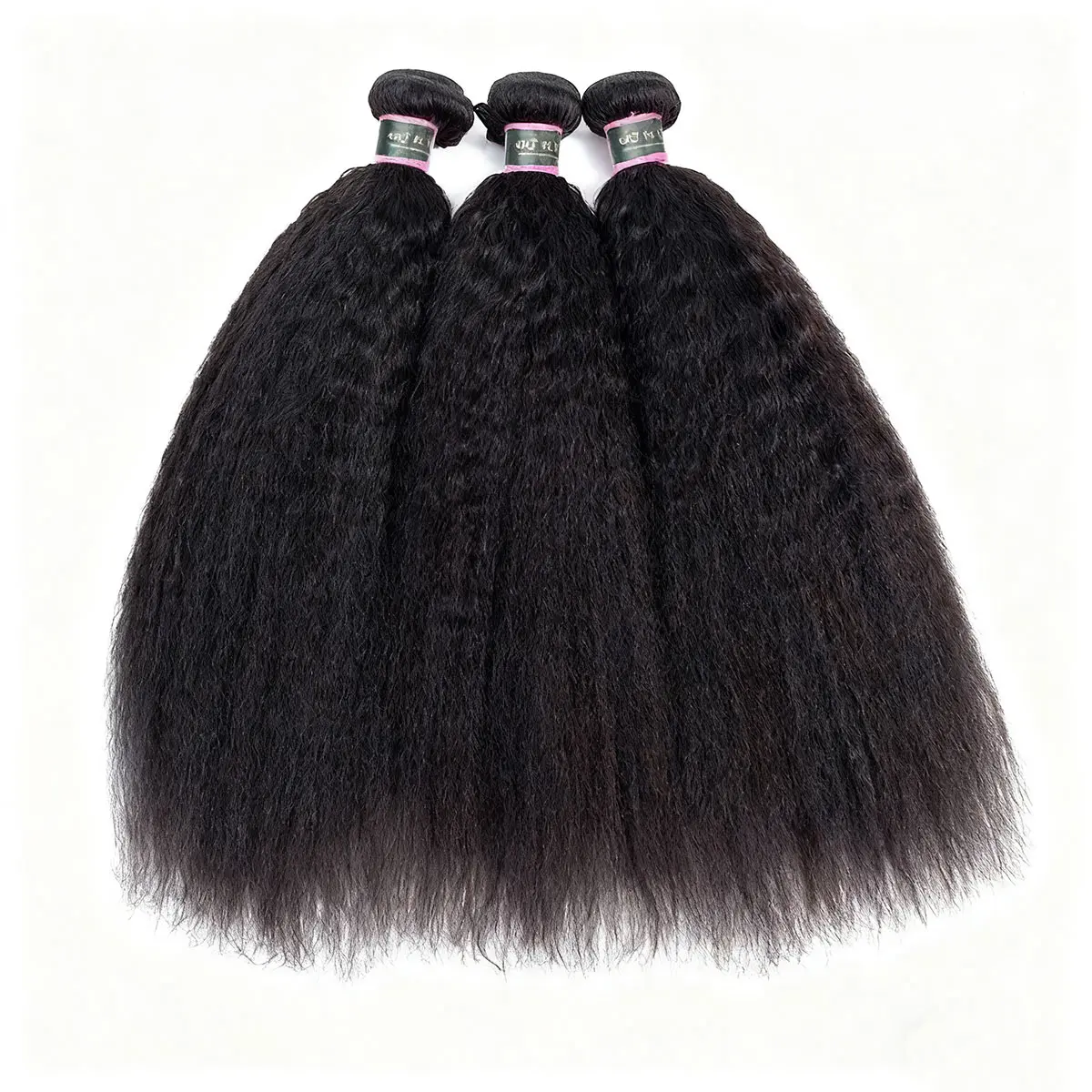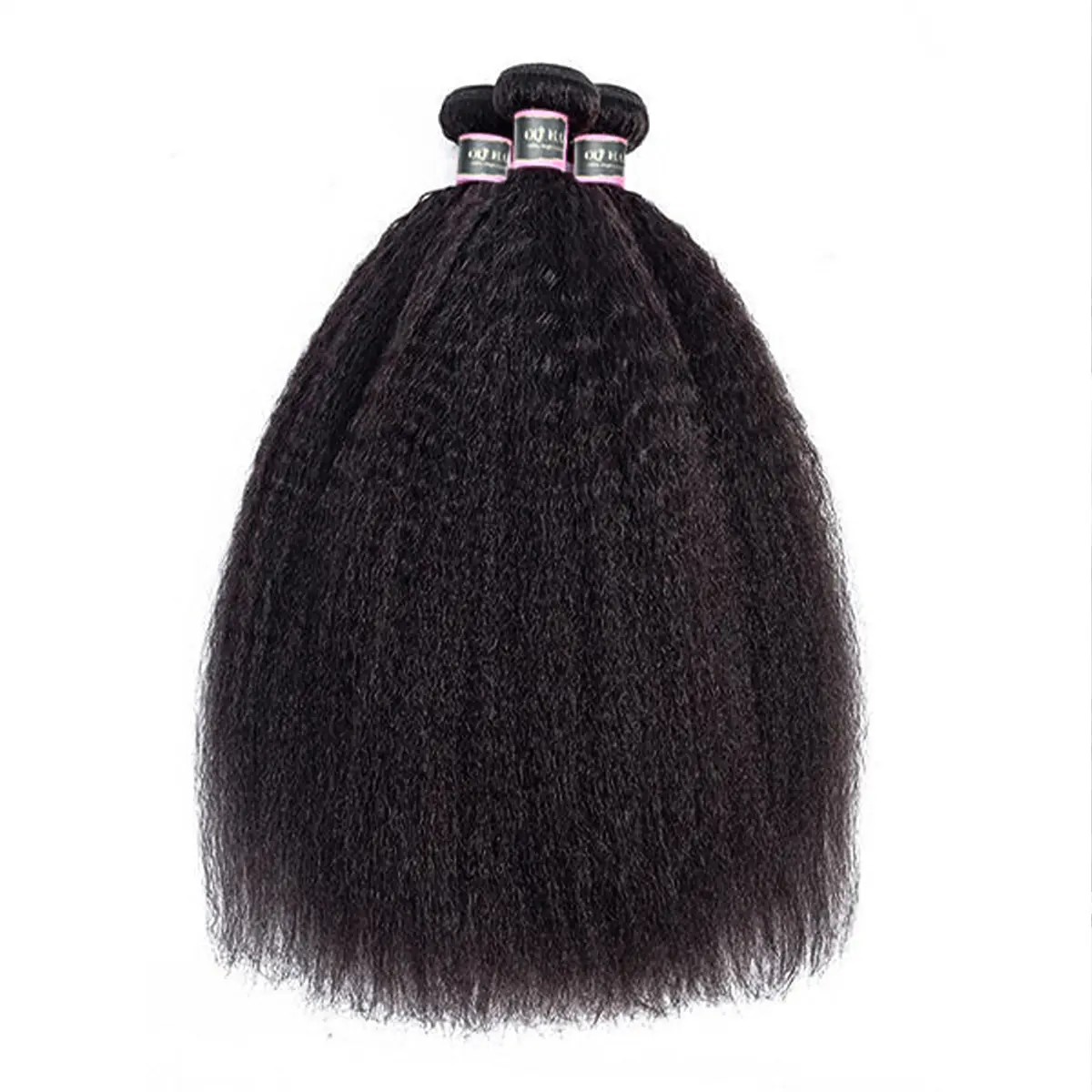 OQ HAIR Kinky Straight Hair Bundles 100% Virgin Human Hair Weaving Natural Black Color 3 4 Bundle Deals Double Weft Sew in Hair Extensions