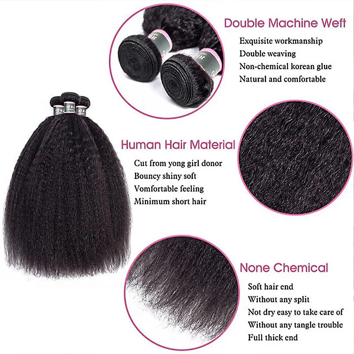5. OQ HAIR Kinky Straight Hair Bundles 100% Virgin Human Hair Weaving Natural Black Color 3 4 Bundle Deals Double Weft Sew in Hair Extensions