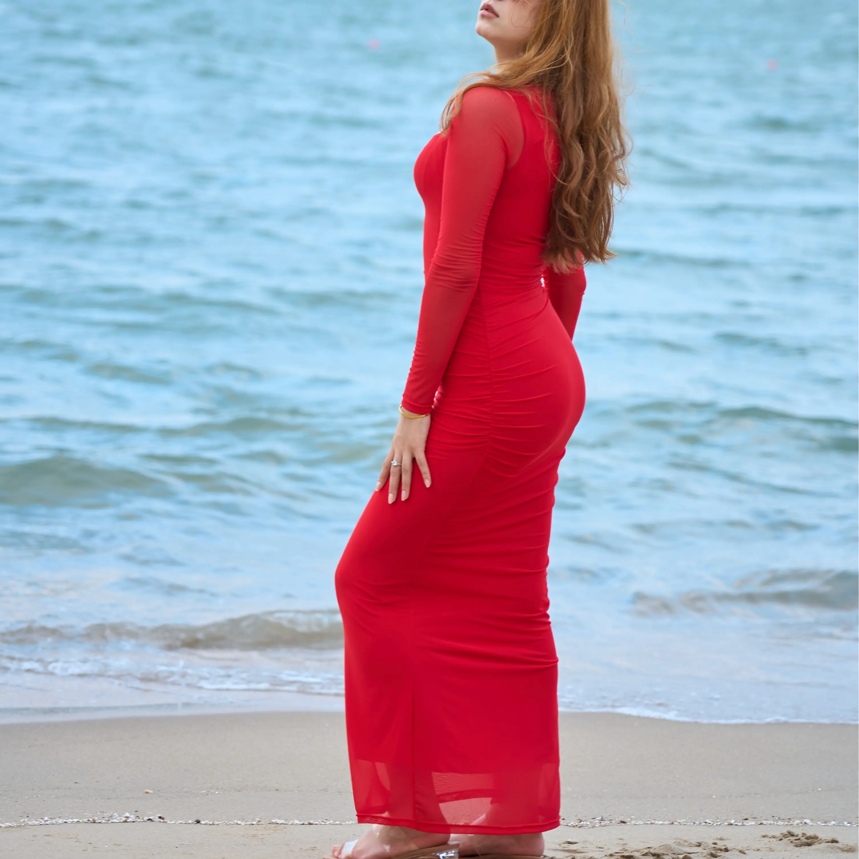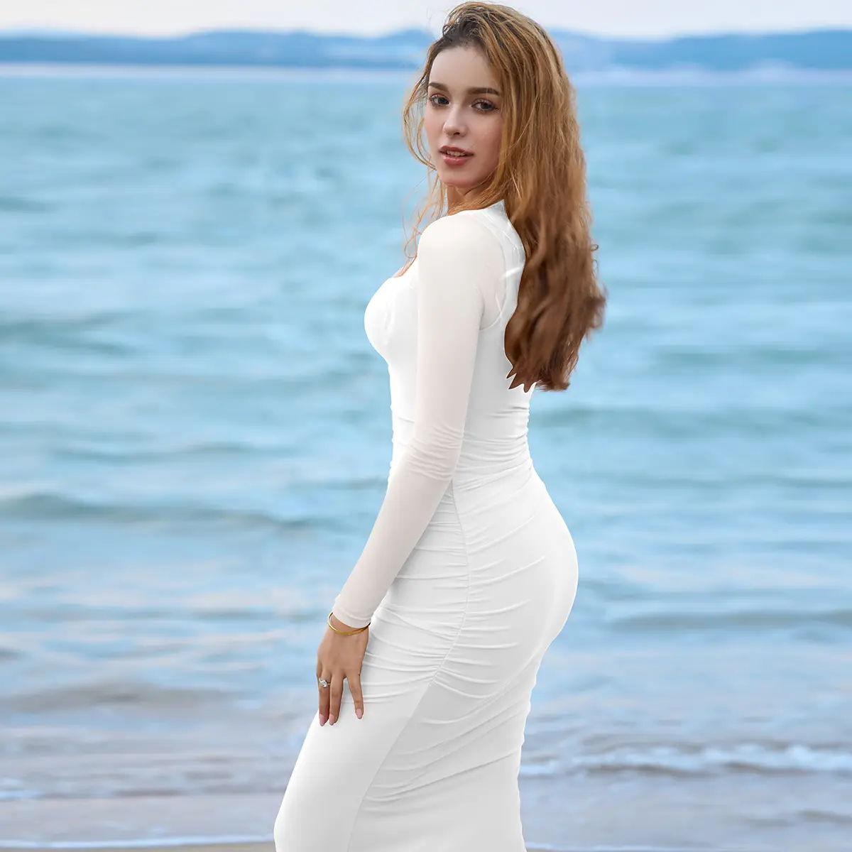 ·Ruched Maxi Fit:Flattering silhouette that hugs curves