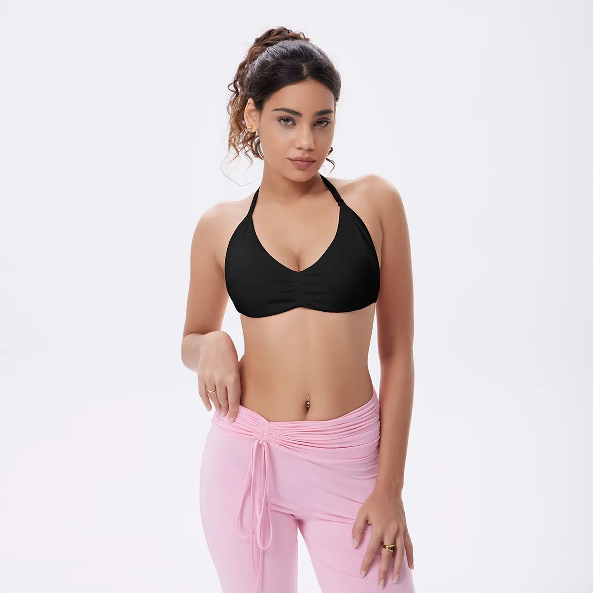 Cute sports bra wouldn’t recommend doing any high intensity workouts. They look great for arm/back day. Can pass as a bathing suit top. Wish the strap along your back was adjustable like the one that goes over your neck.