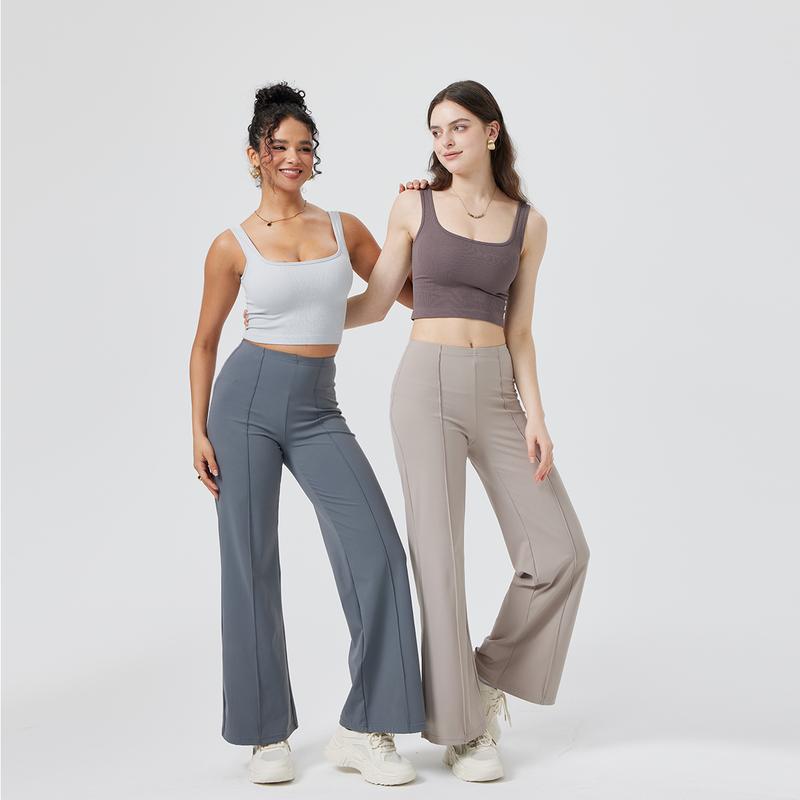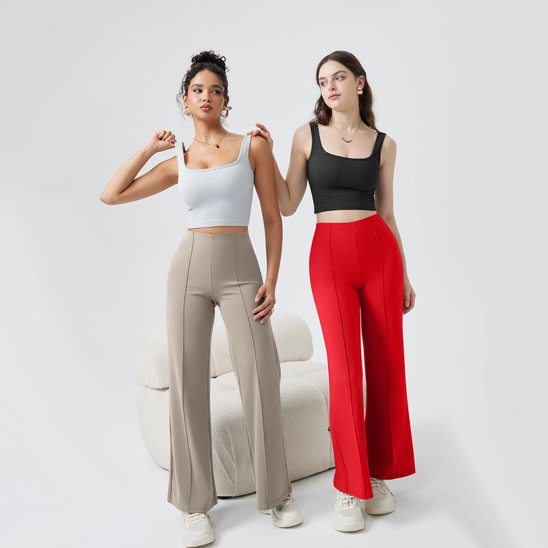 🌟 OQQ Women Straight Leg Pants High Waist Casual Lounge Work Basic Pants Vacation Comfort Trouser Minimalist Womenswear Bottom Lady Underwear Nylon