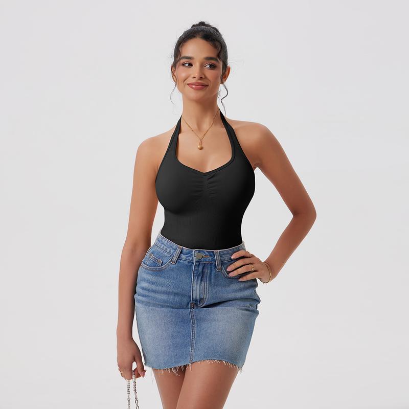 Super cute on really sucks in some unwanted weight gain rolls. Personally would buy this again but with a different strap so all the weight isn’t on my neck but that’s just a me problem. I would recommend this helps hold rolls in as well as showing off your curves. Its made of a thicker comfy fabric