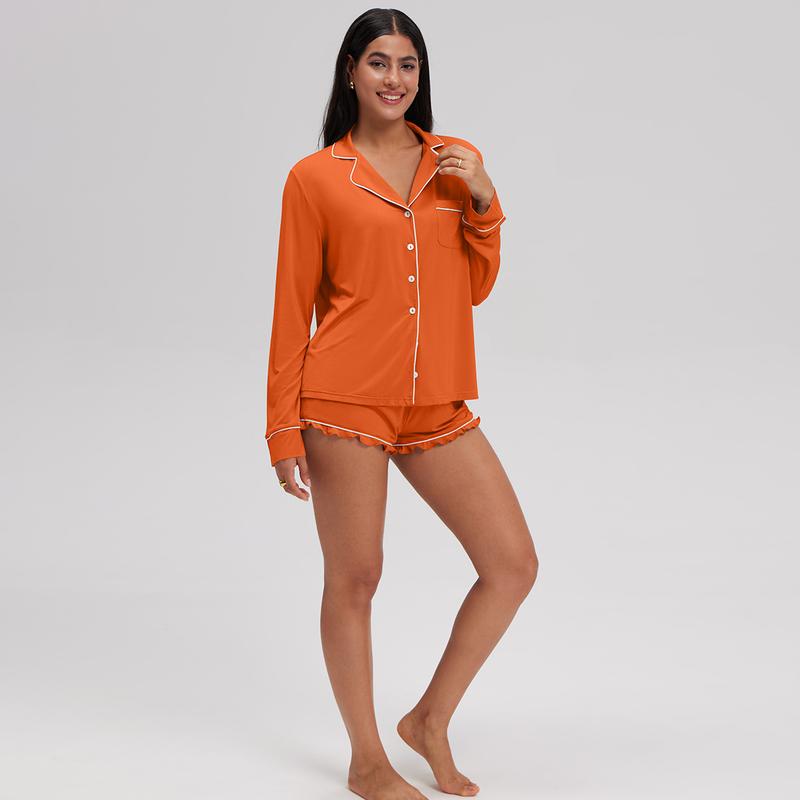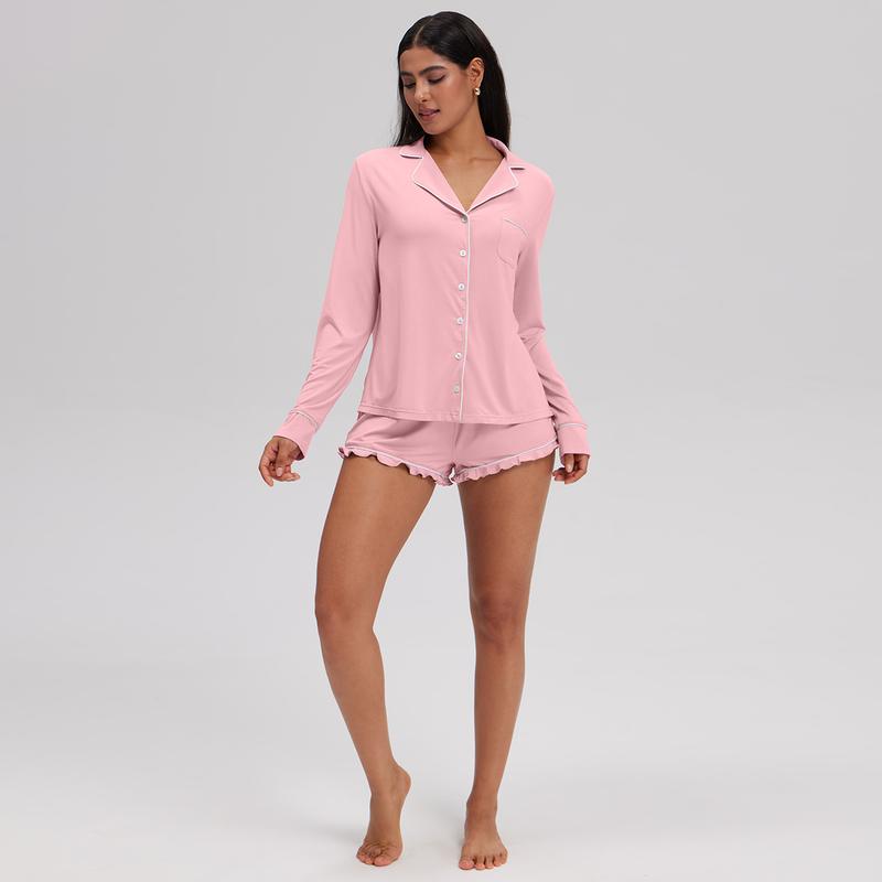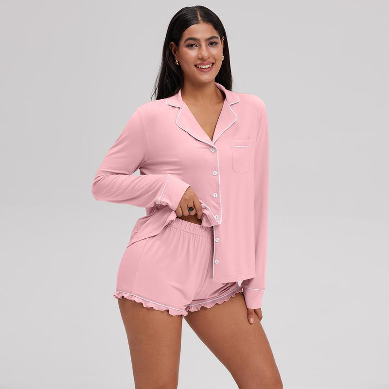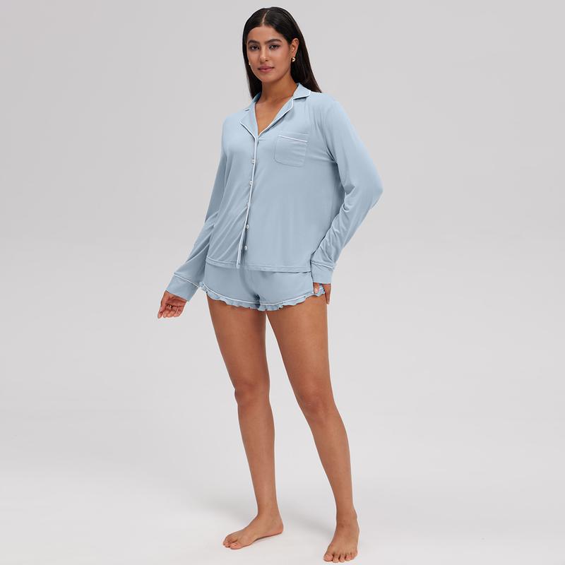 OQQ Women’s Comfy Two-Piece Button-Down Pajama Set