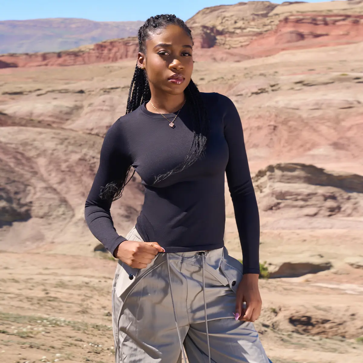 Best for layering or by itself the price is amazing and you could split up the 3 pack for gifts. The material is thicker and keeps you warm in the cold weather The stretchy fabric gives you a hug and smooths out the waist, and also hold in any lose arm skin. My new fav long sleeve crew neck.
