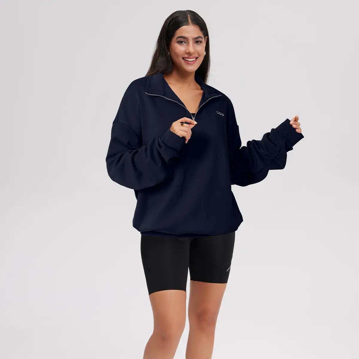 ·Design: This long-sleeved sweatshirt is perfect for layering. It features a quarter-zip design, and high collar for added warmth. Ideal for casual wear, it combines comfort and style.