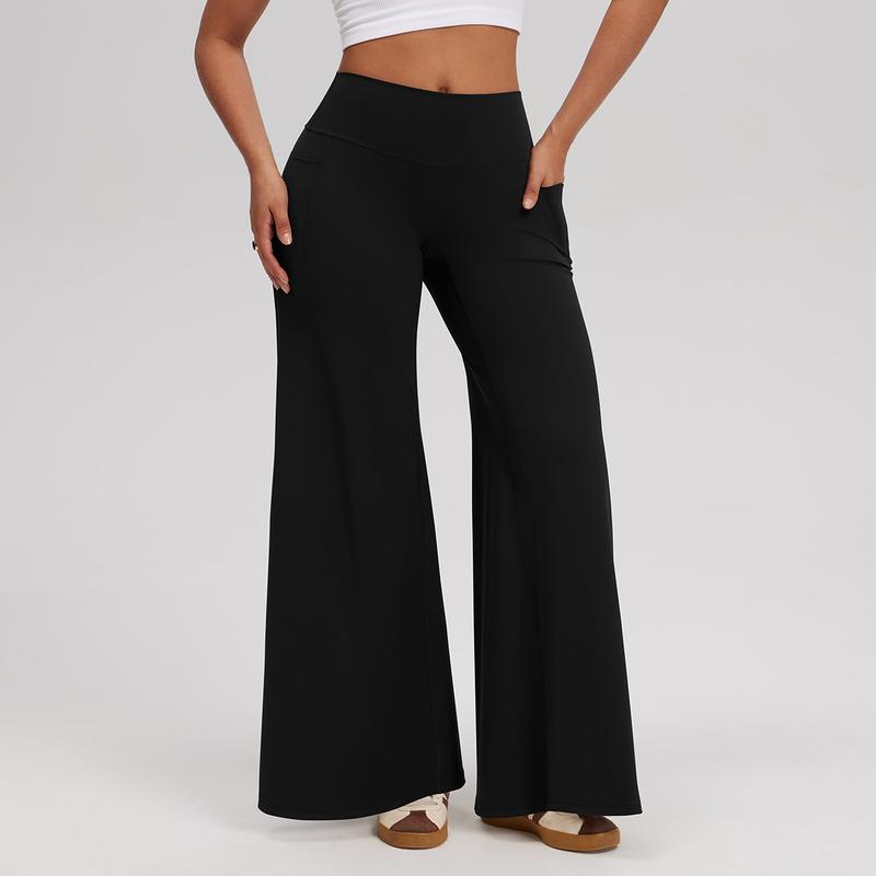 I really like these (pics r the brown ones). They’re stretchy but also hold you in. The fabric is nice and thick, but not hot, & bell bottom design is very flattering. The waist does cinch in so the only thing is I find it rolls down bc it’s so high waisted. If you have rolls keep that in mind.