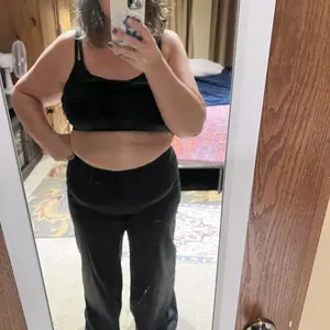 I really like these pants. They’re stretchy but also hold you in. The fabric is nice and thick, but not hot, and bell bottom design is very flattering. The waist does cinch in so the only thing is I find it rolls down bc it’s so high waisted. If you have rolls keep that in mind.
