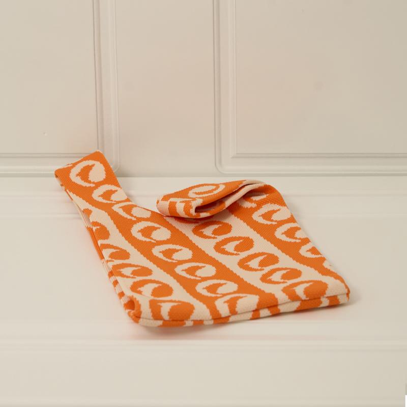 5. OQQ Women’s Handbag Knit Shopping Tote Bag – Casual Dolphin Logo Pattern Handbag Small Size Wristlet Bag