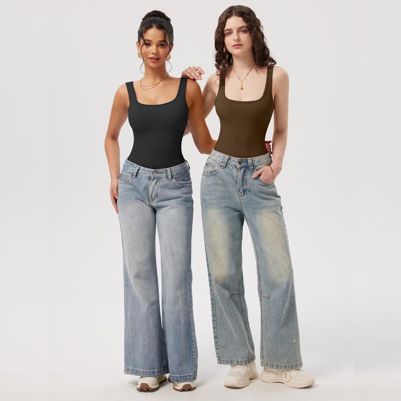 5. OQQ Women's Bodysuits Sexy Ribbed Sleeveless Square Neck Bodysuits