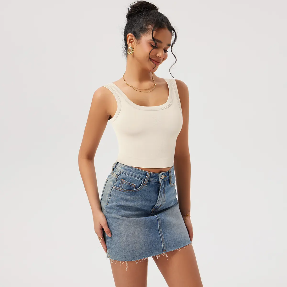 ·Square Neck: Offers a contemporary aesthetic.