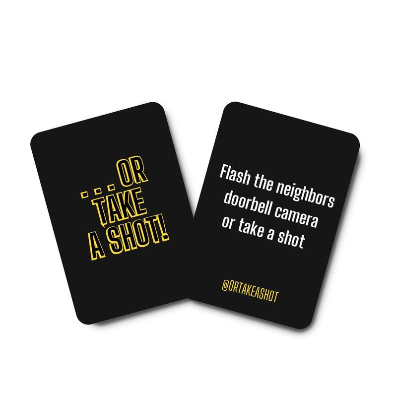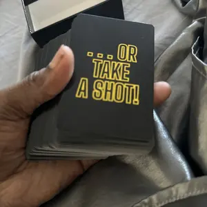 Honestly the game cards are not good for the “or take a shot” card game. I was reading through them and they just were corny or just didn’t make sense. Better off buying a different card game don’t even waste your time unless you’re 30 and up then maybe you’ll like it.