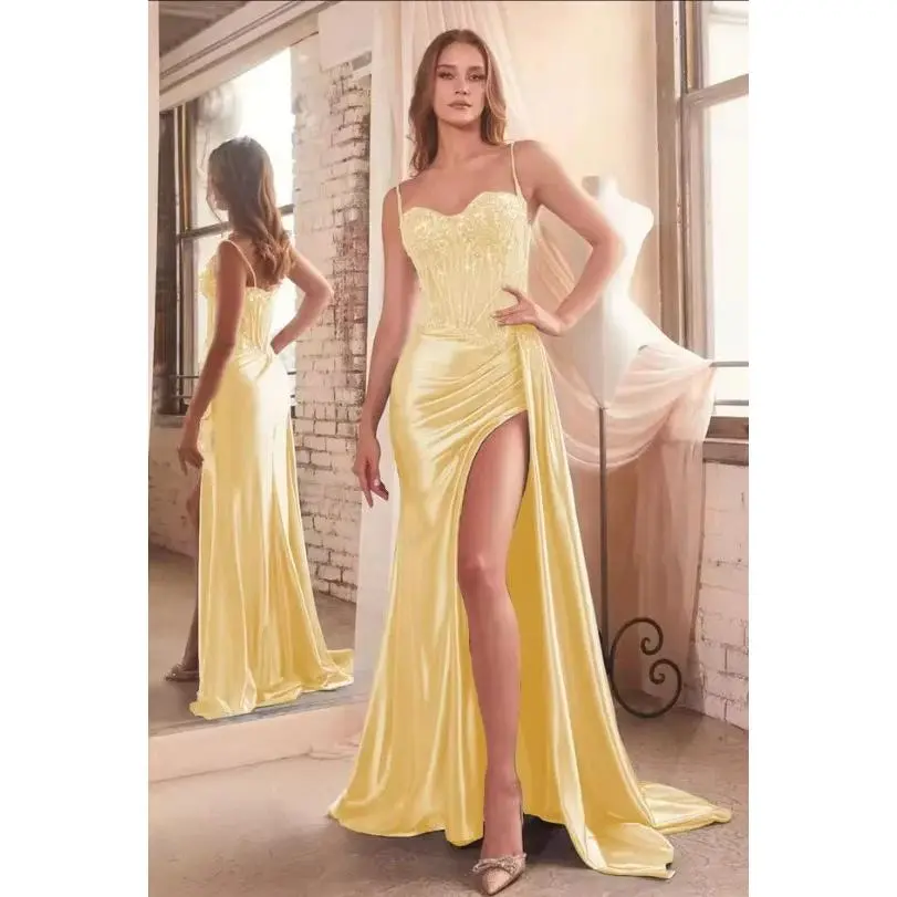 Radiate timeless elegance in thisluxurious satin prom dress!Featuring astructured strapless bustier,body-skimming silhouette, andliquid-like satin fabric, this gown deliversred-carpet glamourfor weddings, galas, and special occasions where you deserve to shine. Key Features: Premium duchess satin- Ultra-luxurious drape & sheen Built-in corset bodice- Lifts bust while staying secure Hidden side boning- Smoothing silhouette without discomfort Knee-length train- Dramatic yet practical movement Versatile elegance- From black-tie to garden weddings