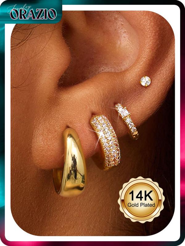 ·Gold Earrings for Women Trendy: These Gold Earring Stack Provides 4 Different Styles Including Ear Cuffs, Gold Studs, Huggie Hoop Earrings, Classic Chunky Hoops and More, Plus Various Sizes for Endless Mix and Match Possibilities Can be Worn Alone or Stacks with Other Cute Earrings from Orazio to Meet Your DIY Needs and Give You A Fresh Look Every Day