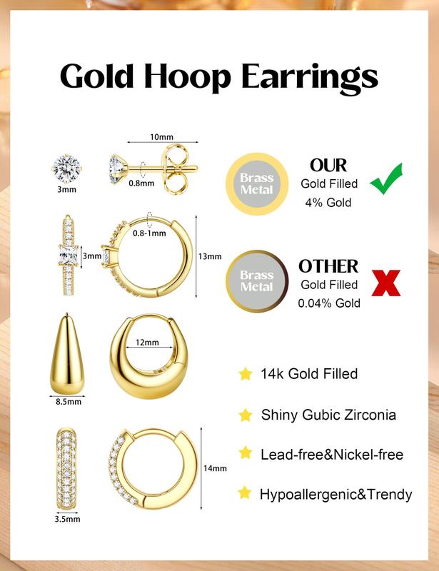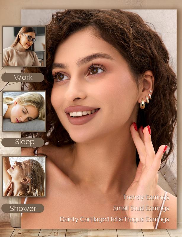 ·Gold Earring Sets for Multiple Piercing: Our Stud and Hoop Earring Sets for Multiple Piercings, Such As Cartilage Earrings for Women, Tragus Piercing Jewelry, Helix Piercing Jewelry, Daith Jewelry, Conch Piercing Jewelry, Earlobe Stud Earrings, Sleeper Earrings, Starter Earrings, Small Earrings for First Hole, Second Hole, Third Hole, etc. Well Fitted And Stack, Stylish Stackable Earrings, Create Many Different Looks for You and Get More Compliments