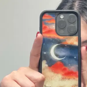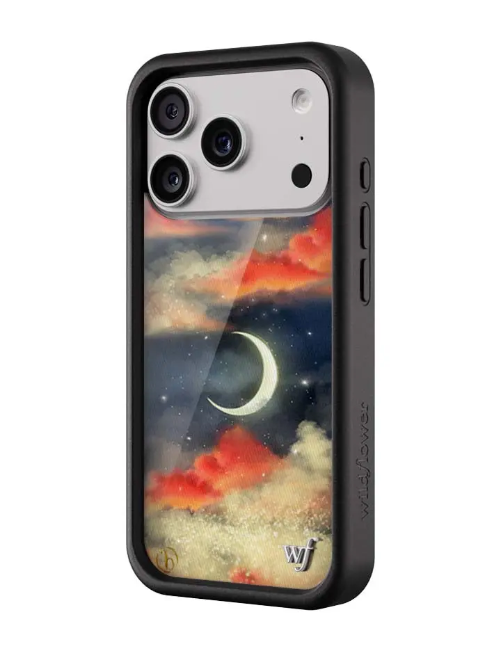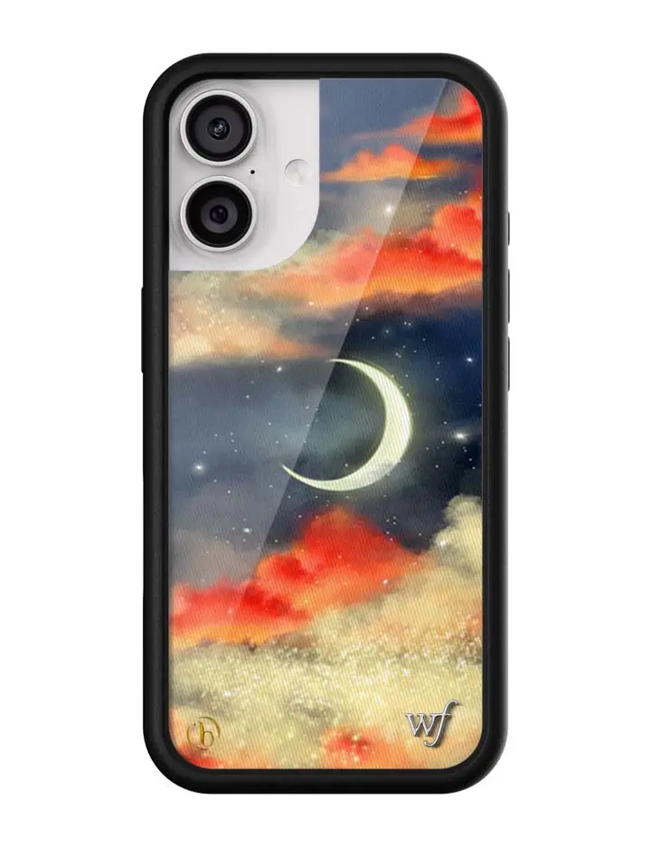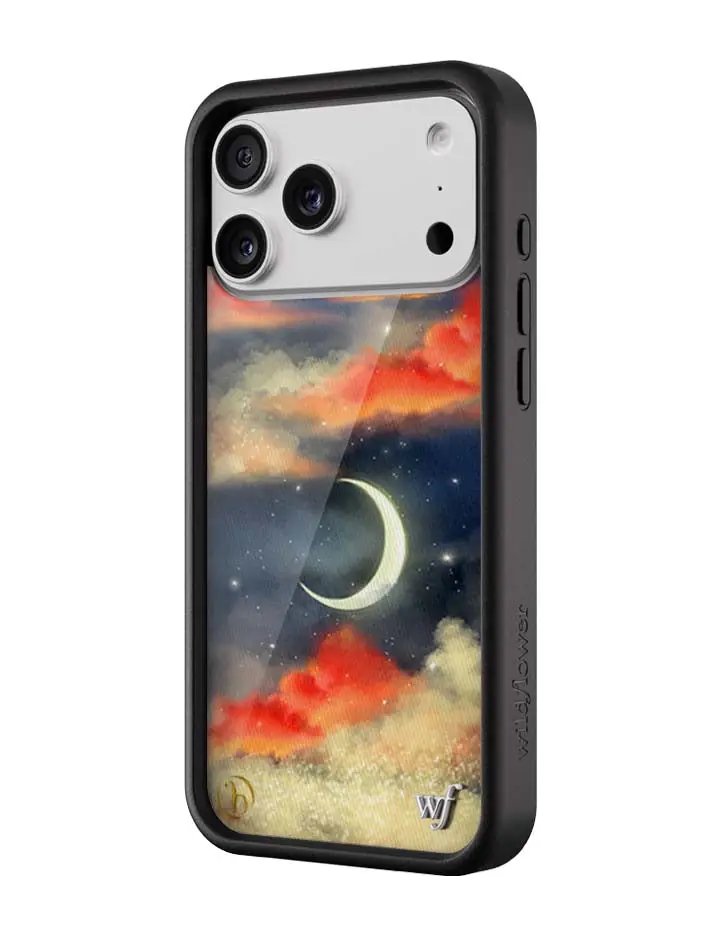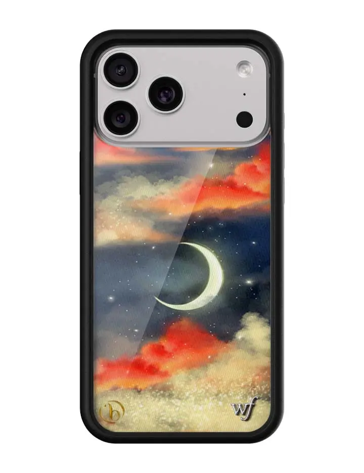 Ever wished your iPhone case could match your dreamy, celestial vibe? Meet the Ôrebella iPhone case, designed by Bella Hadid and her besties Devon and Sydney Carlson. This limited edition beauty features a celestial sky, crescent moon, and softly glowing clouds—perfect for dreamers and late-night texters alike. Each case is handmade, so no two are exactly alike, giving your phone a truly unique look. Crafted from durable sandblasted polyurethane with a black rubber bumper, it offers all-around protection, including a raised front bumper to guard your screen. Plus, the custom silver "wf" emblem adds a chic jeweled accent. Compatible with multiple iPhone models from 11 through 16 series, this slim case keeps your phone easy to handle while giving you full access to all ports and buttons. Want to elevate your style even more? Pair it with the Ôrebella Scentable Wristlet to carry your favorite scent and complete your look. Ready to protect your phone with a touch of celestial magic? Grab your Ôrebella case today and let your phone shine as bright as you do!