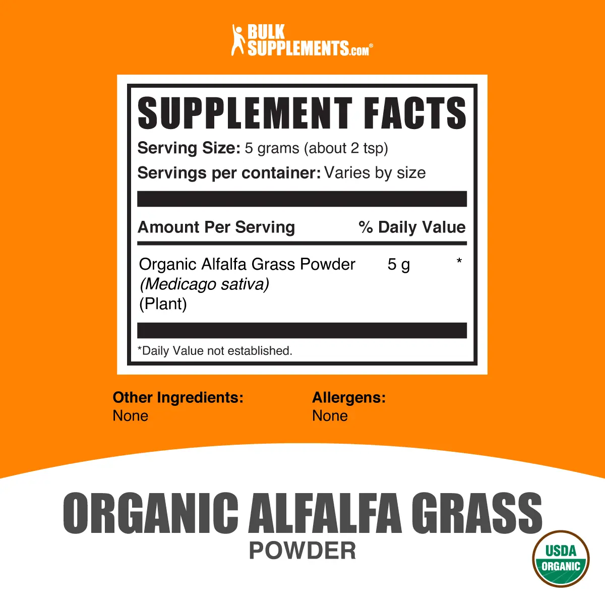 Experience the nourishing goodness of BulkSupplements Organic Alfalfa Grass powder! Our alfalfa powder is a green gem that embodies the vitality of nature. It's not just a supplement, it's a step towards healthier living. With its subtly sweet taste and easy-to-use format, it effortlessly blends into your daily routine. Embrace the wellness wave with our Organic Alfalfa Grass powder - it's the natural power-up your regimen has been waiting for!