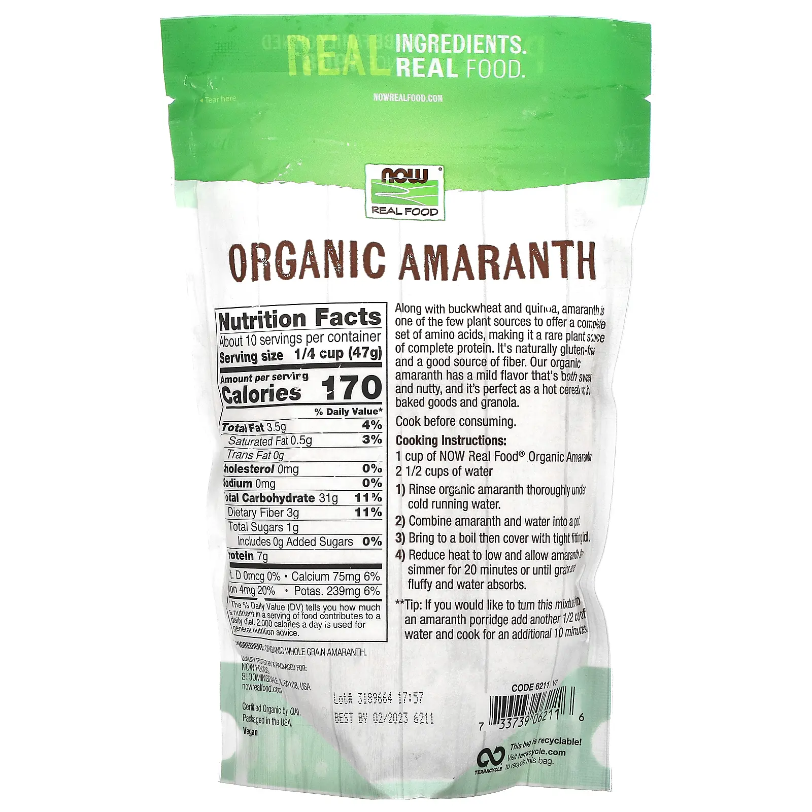 NOW Foods Organic Amaranth, Whole Grain, 16 oz (454 g)