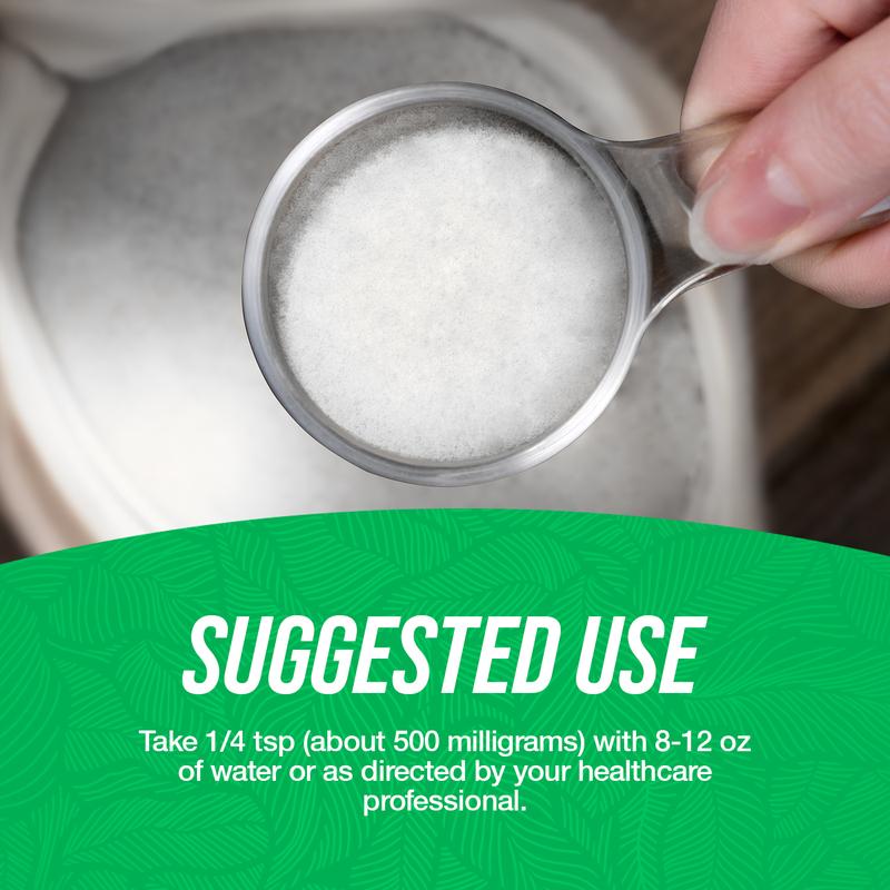 Suggested Use: Take 1/4 tsp (about 500 milligrams) with 8-12 oz of water or as directed by your healthcare professional.
