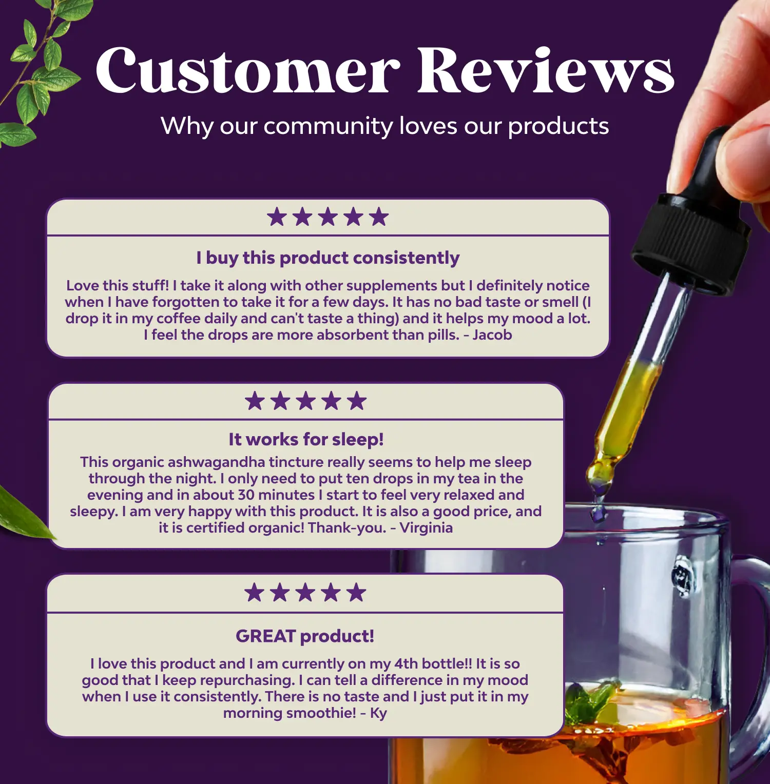 I love this!!!! The ashwagandha drops are good with helping me sleep and the taste isn’t too bad. The packaging is generic but overall a solid buy.