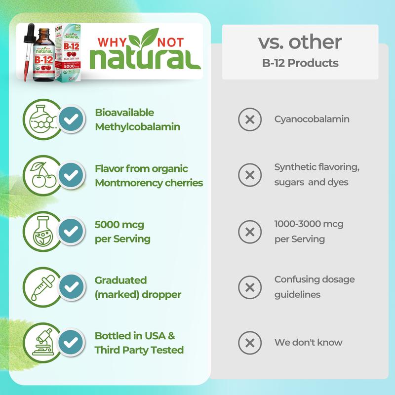 ·Compare our Quality: Compare your current B12 Supplement Facts label to our liquid vitamin B12, and see why Why Not Natural B12 is #1! We have made it our mission to create the best B12 drops, and we back it up with a 60-day money-back guarantee!