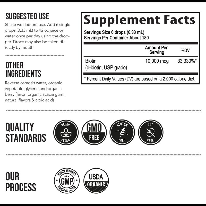 Organic Biotin 10,000 mcg | Sublingual Liquid for Enhanced Absorption