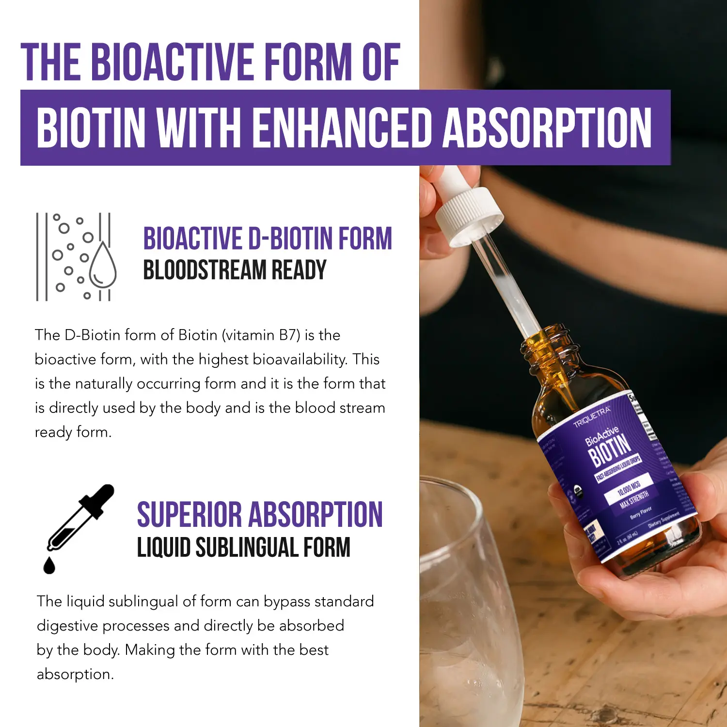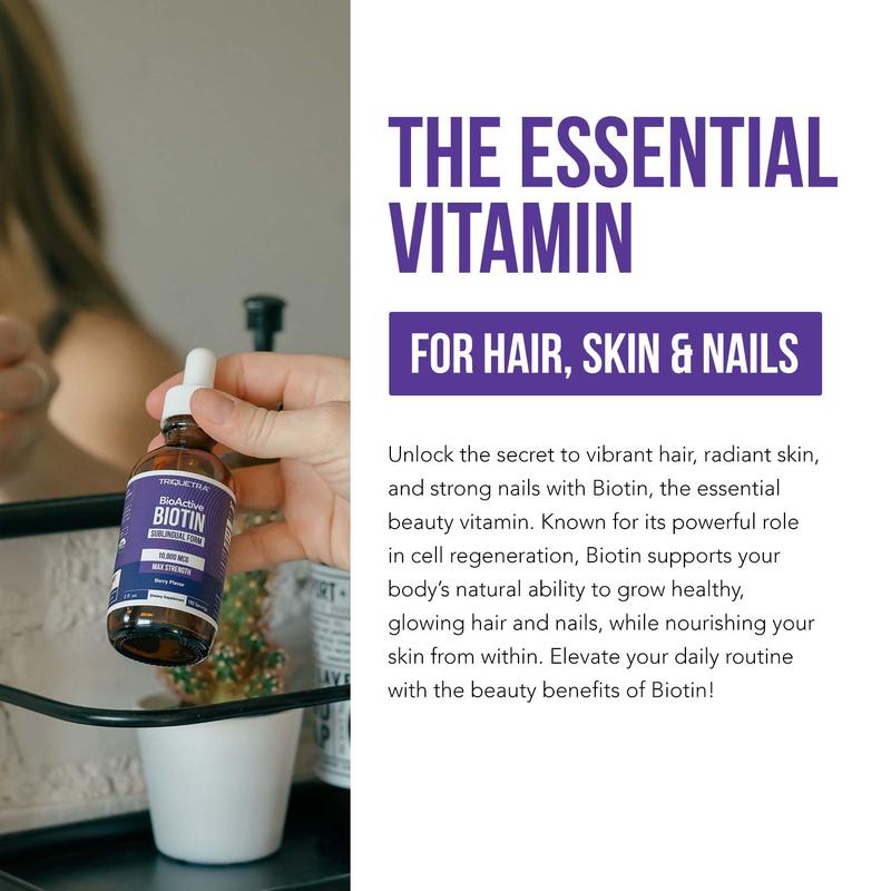 ·Bioactive D-Biotin: Contains 10,000 mcg of D-Biotin, the naturally occurring and highly bioavailable form of Vitamin B7 for superior effectiveness.
