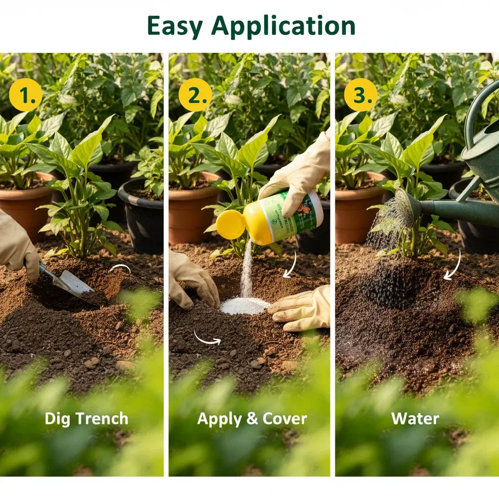 Tip: Apply once per growing season for best results. For potted plants, a small amount per pot is enough to see improvements in root and flower growth.