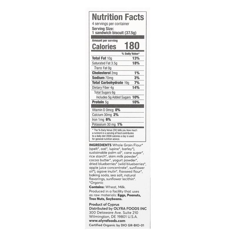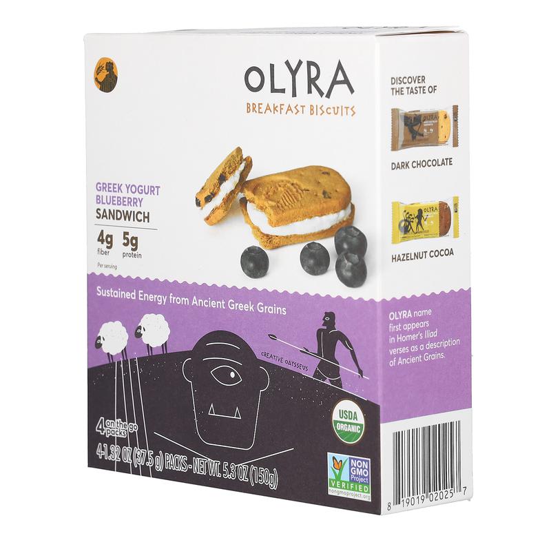 5. Olyra Organic Breakfast Biscuits, Greek Yogurt Blueberry Sandwich, 4 Packs, 1.32 oz (37.5 g) Each