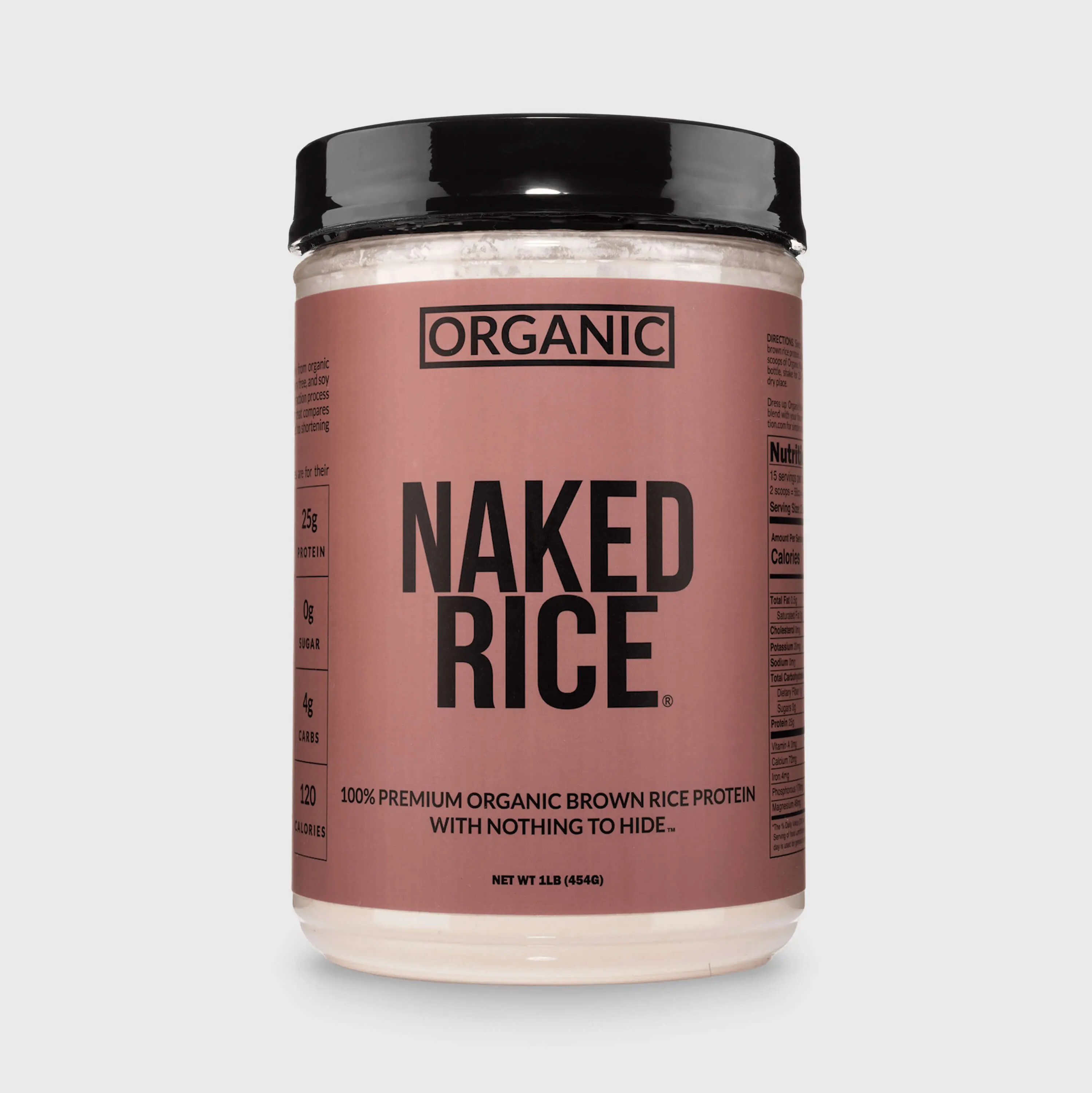 Naked Rice has only one ingredient: Organic sprouted brown rice protein. Naked Rice is made using a hexane-free extraction process to create a protein with a superior amino acid profile, making it an excellent alternative to whey for those on a plant-based diet.
