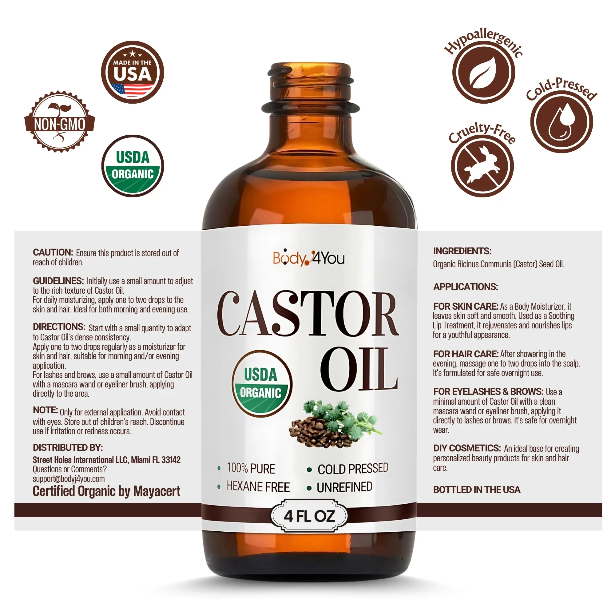 ·VEGAN & CRUELTY-FREE COMMITMENT: Choose Our Organic Castor Oil as Ethical Beauty Solution. Made Without Animal Products and is Not Tested on Animals, Aligning With Vegan and Cruelty-free Standards.