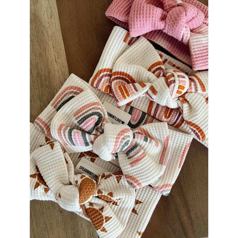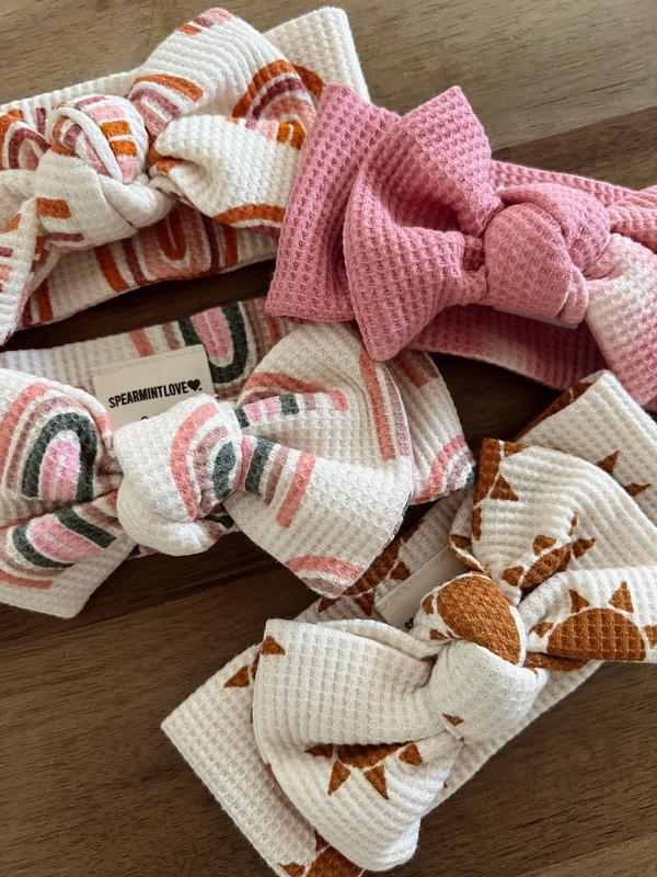 5. Organic Waffle Knot Bow, Pink Rainbow
