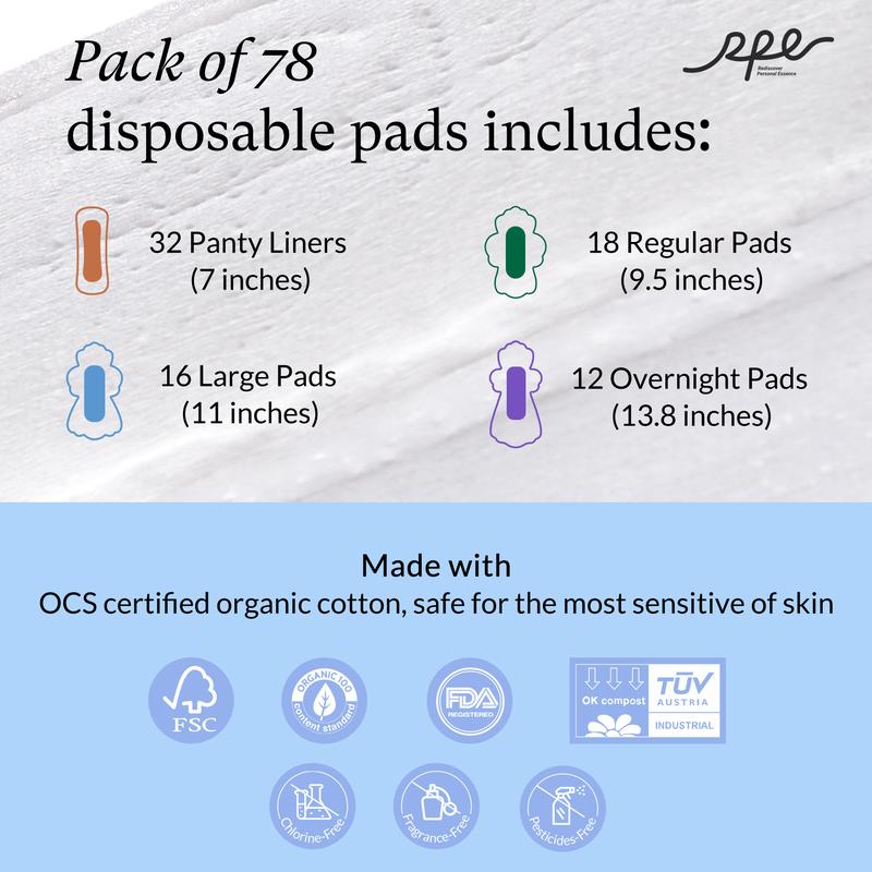 【Full Cycle Protection】RPE Life 100% Organic Cotton Pad Bundle, 78 Count, Ultimate Comfort for Every Day & Night!