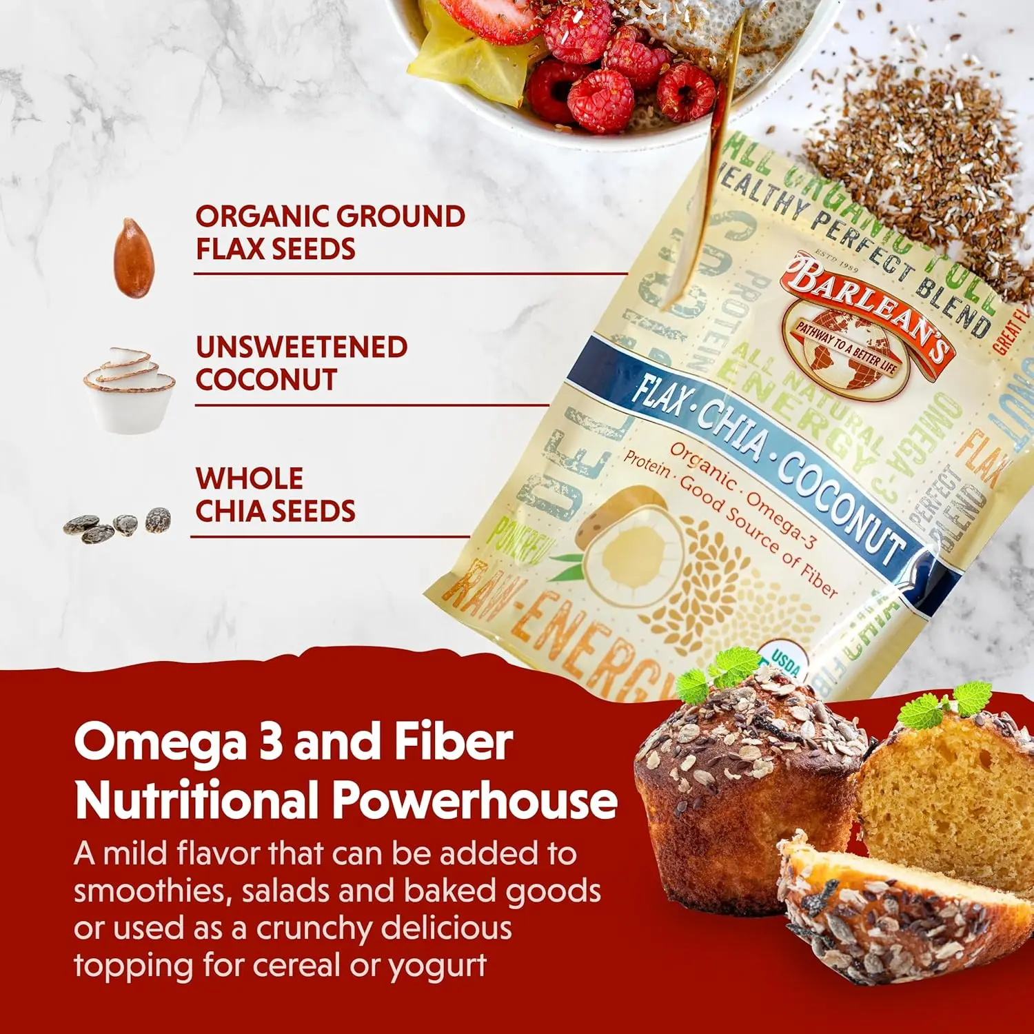 Experience the nourishing benefits of Barlean's Organic Oil, a delightful blend of organic flax, chia, and coconut seeds. This all-organic mix is perfect for everyday enjoyment.