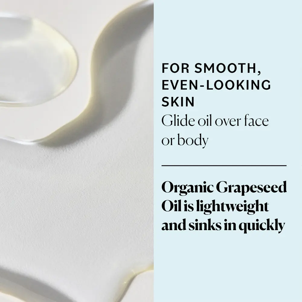 Lightweight Oil for Uneven Skin Tone and Texutre: Sinks quickly into skin to support a nourished-looking complexion. Apply a small amount of Organic Grapeseed Oil to clean, dry skin or add to your favorite moisturizing face and body creams.