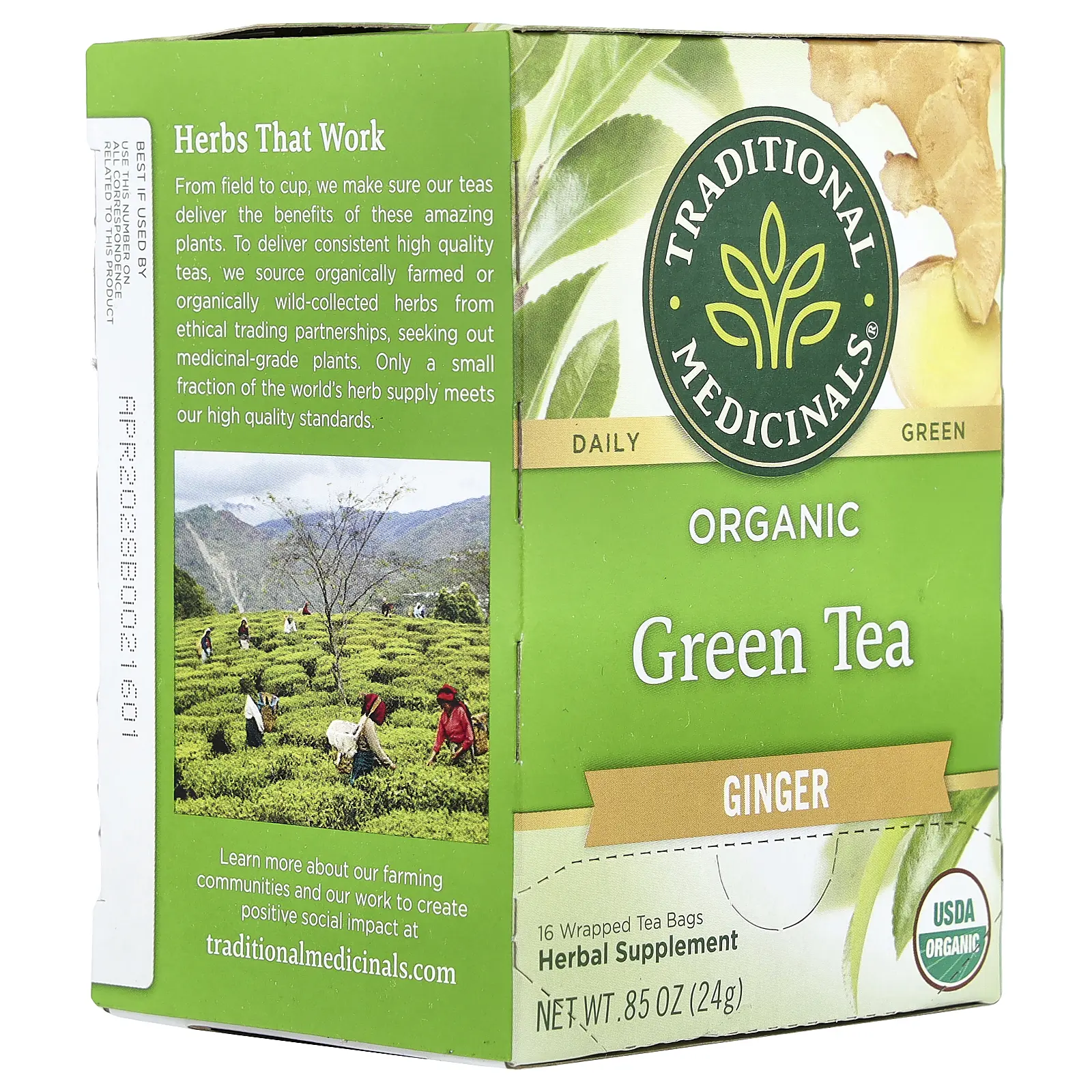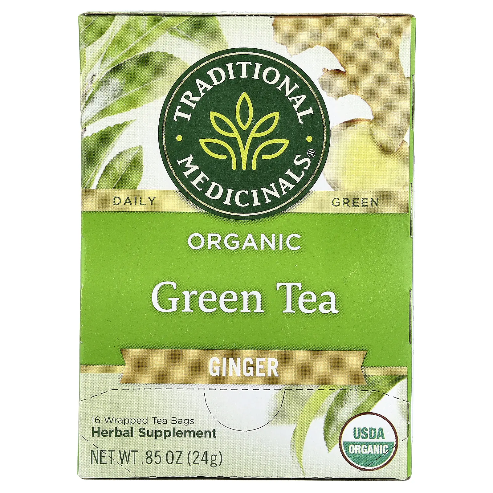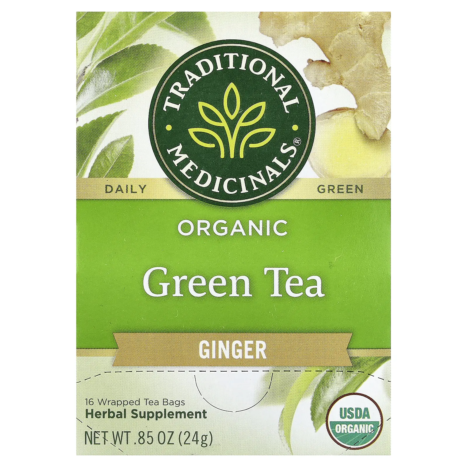 Traditional Medicinals Organic Green Tea, Ginger, 16 Wrapped Tea Bags, 0.85 oz (24 g)