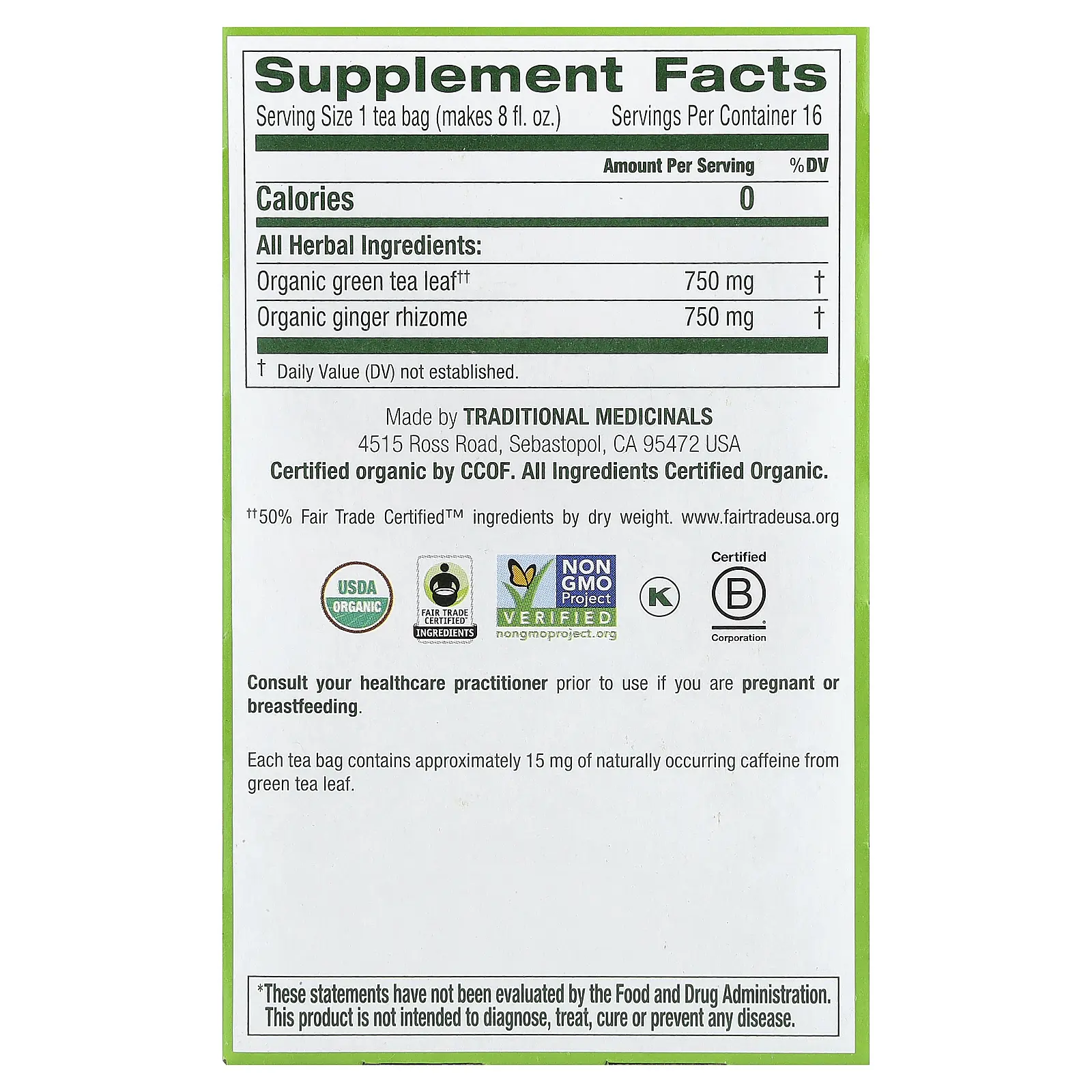 IngredientsEach tea bag contains approximately 15 mg of