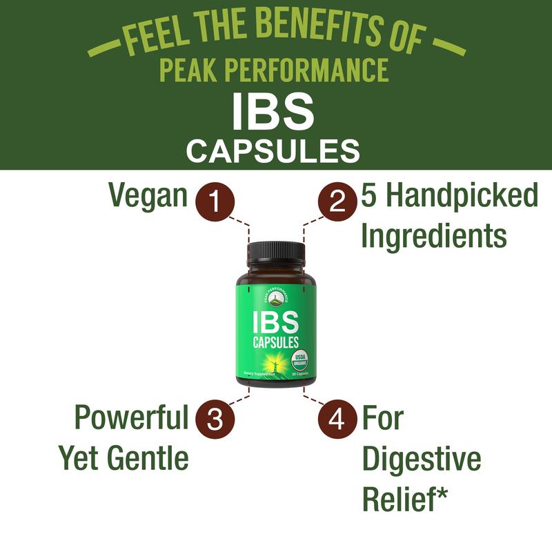 ·Powerful Yet Gentle - Peak Performance USDA Organic IBS Capsules are a gentle supplement to assist with irritable bowel in adults. This formula can also help promote a healthy stomach for optimal well-being.