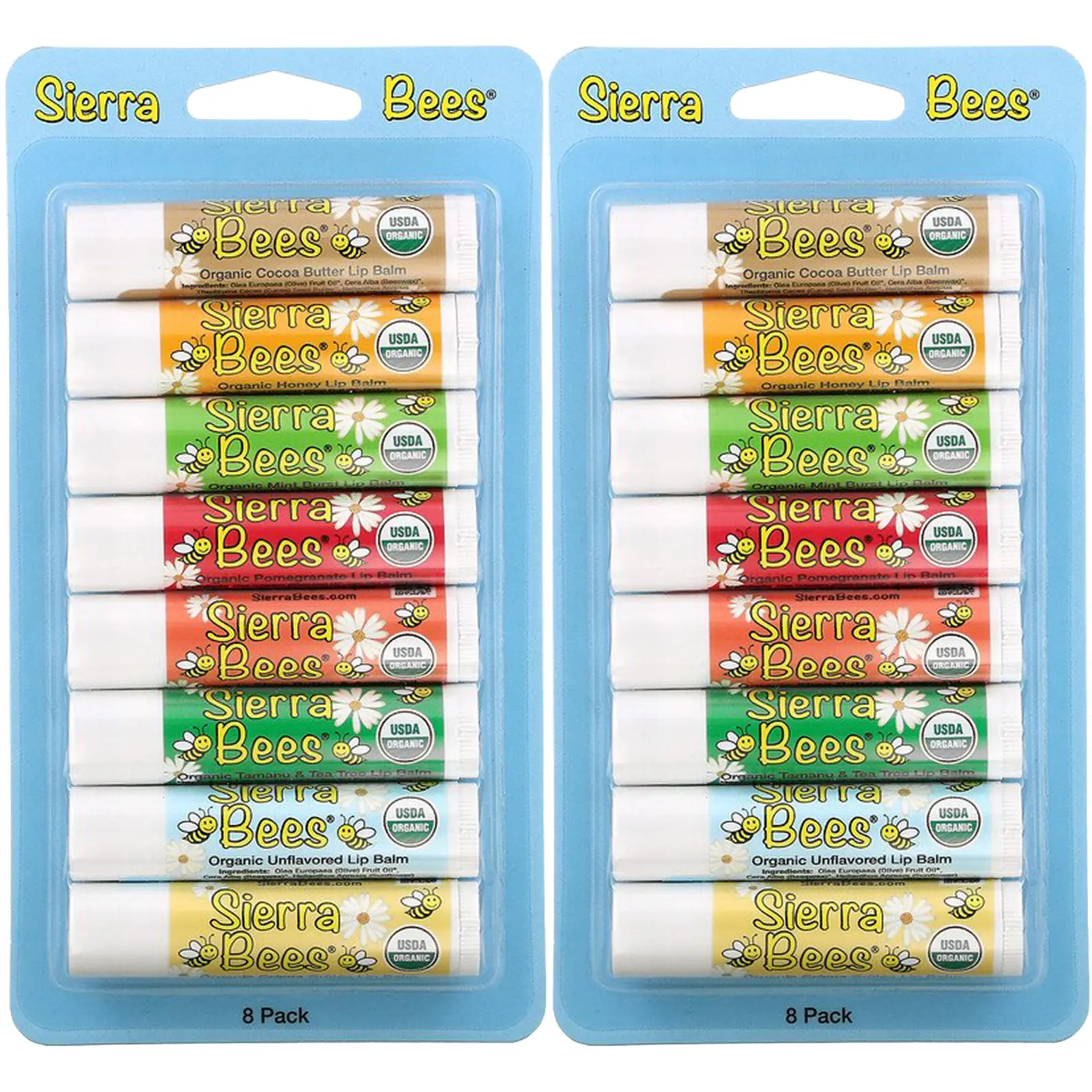 Sierra Bees, Organic Lip Balms Combo Pack, 8 Count (Pack of 2) .15 oz (4.25 g) Each, GMO Free, Cruelty Free