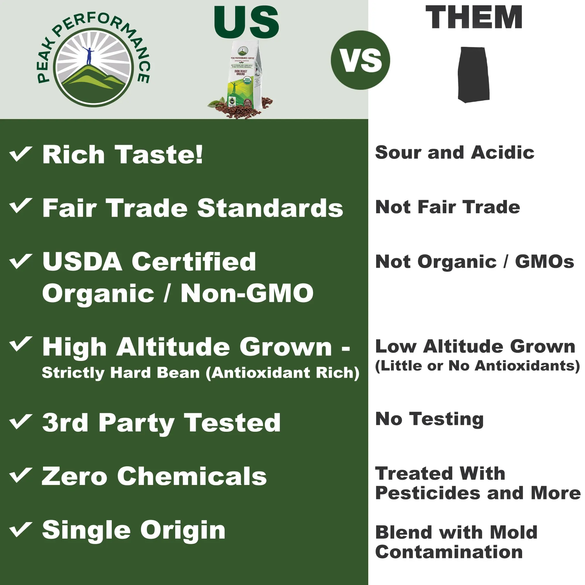 ·Health Risks: Conventional coffee is heavily treated with chemicals, which can disrupt hormone balance for both men and women.