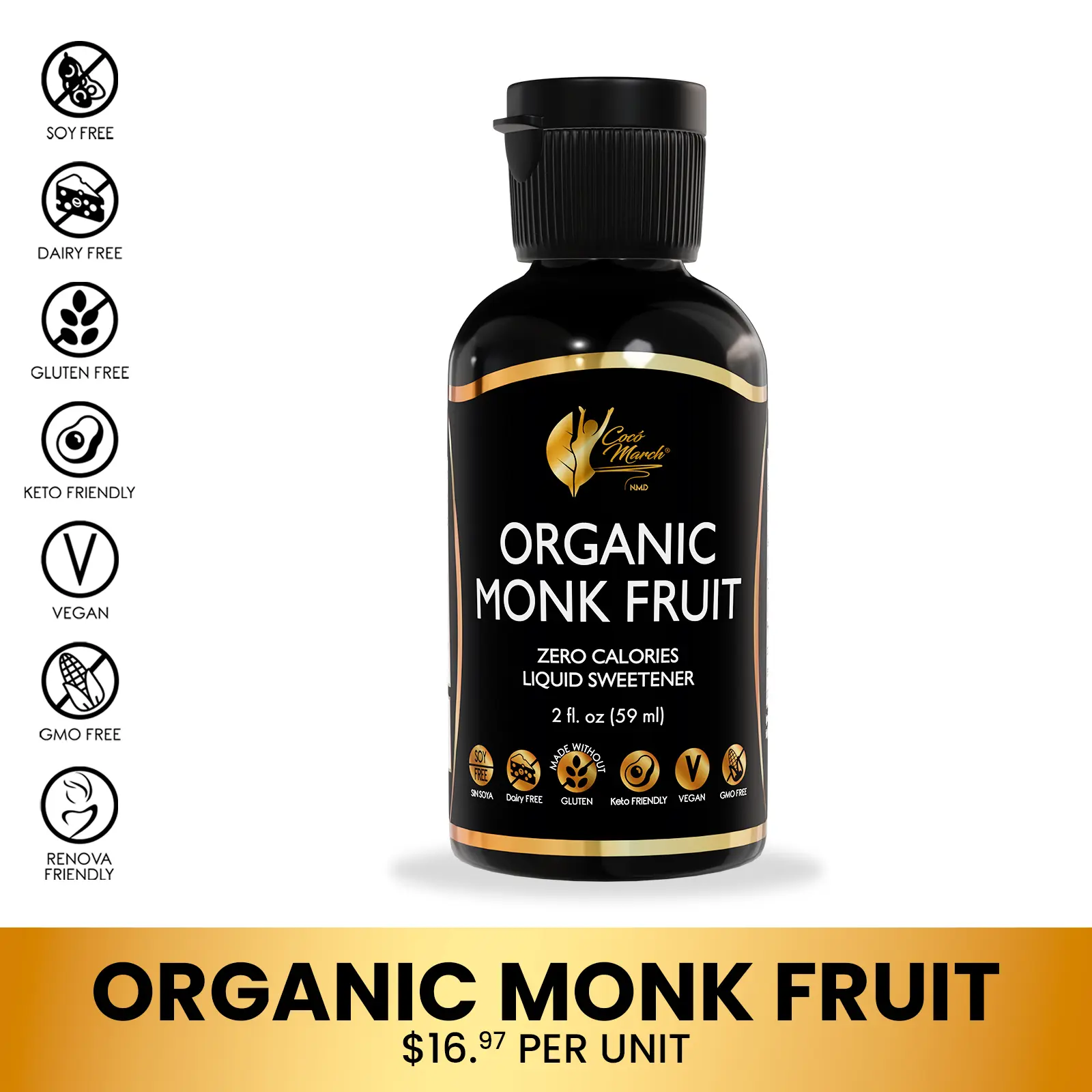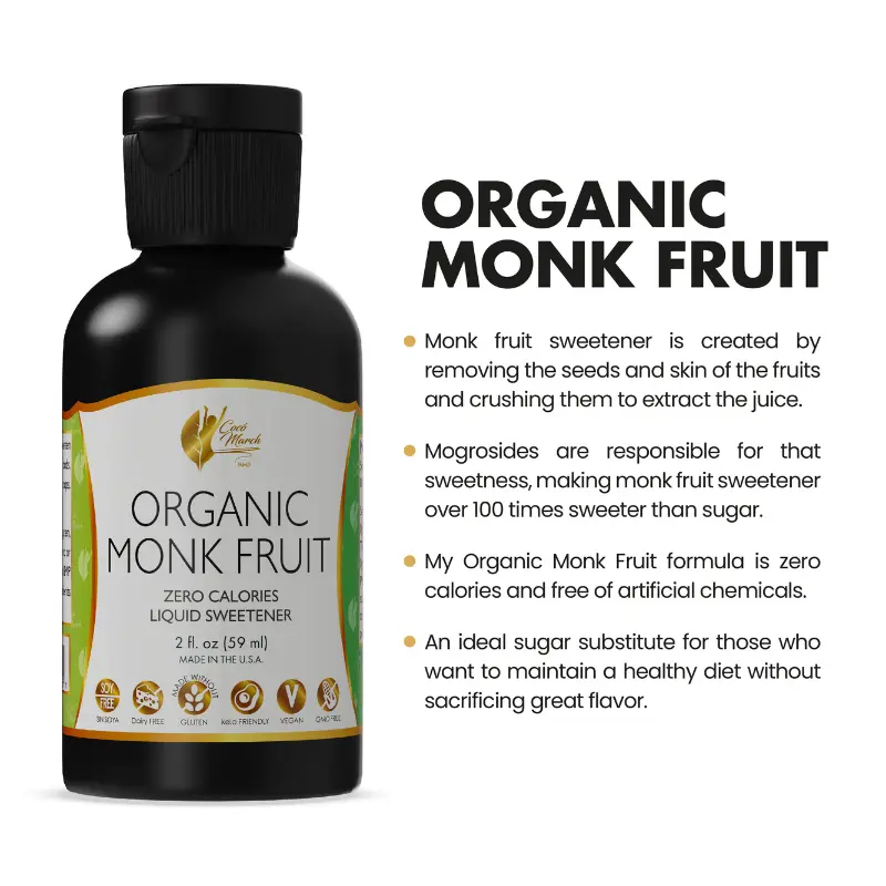 Coco March Organic Monk Fruit is a zero-calorie sweetener, 100 times sweeter than sugar. Made from pure monk fruit extract, it's free from artificial chemicals. Perfect for keto and low-carb lifestyles, it offers guilt-free sweetness in drinks and baking.