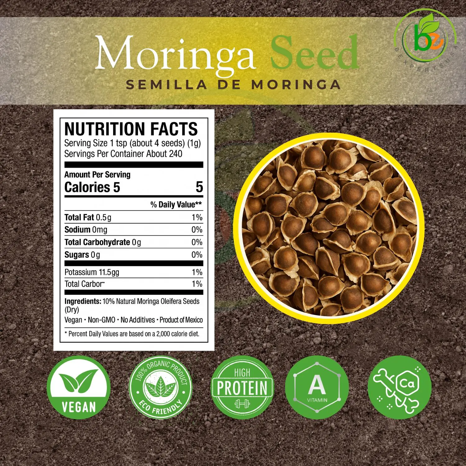 Moringa Seeds (Semillas) – 3.5 oz (Approx. 350 Seeds) – Premium Quality Moringa Oleifera. These seeds are non-GMO and organically grown, ensuring purity and quality.