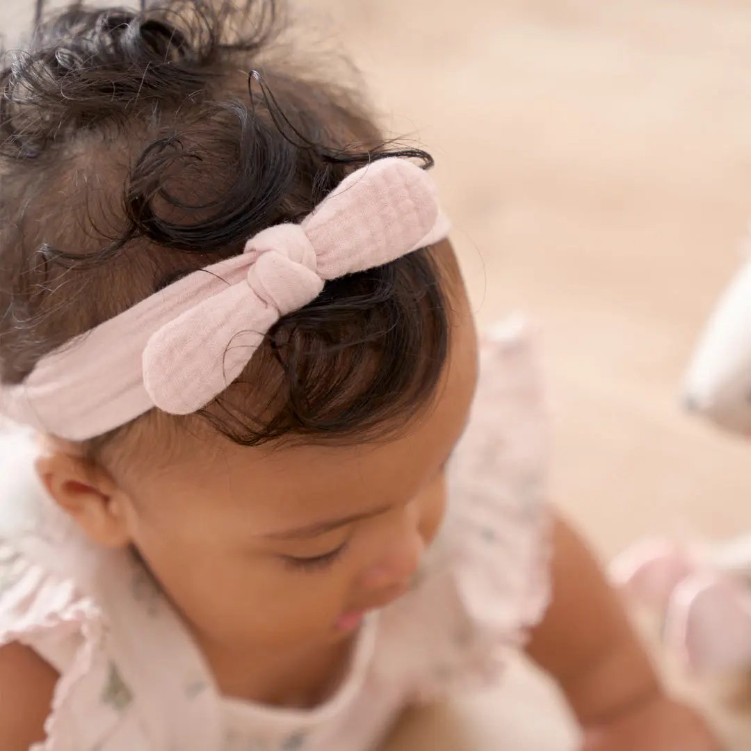5. Organic Muslin Bow Headband Set Taupe/Blush 2PC