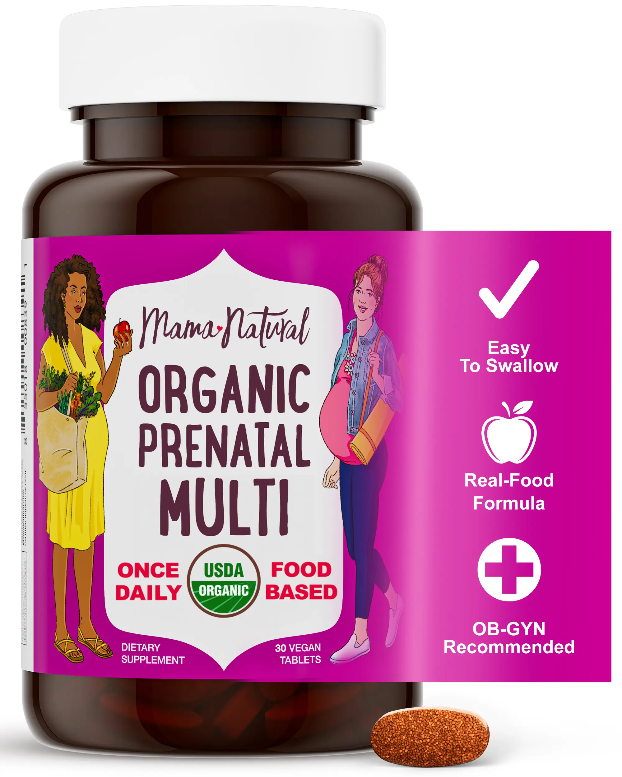 Β·ONE A DAY FORMULA: Mama Natural's USDA Organic prenatal multivitamin offers stress-free nutrition with just one easy-to-swallow tablet, perfect for pregnant mamas dealing with morning sickness or forgetfulness.